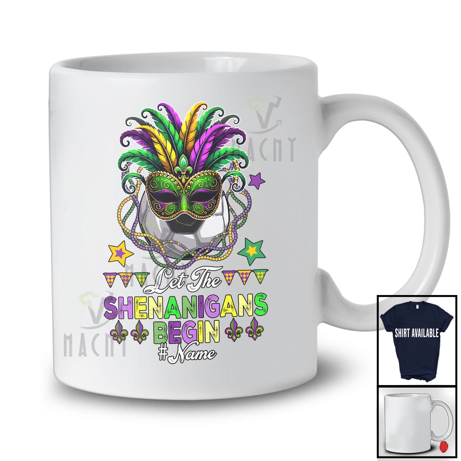 new MacnyStore - Personalized Custom Name Let The Shenanigans Begin; Joyful Mardi Gras Masked Soccer Beads T-Shirt – Macnystore