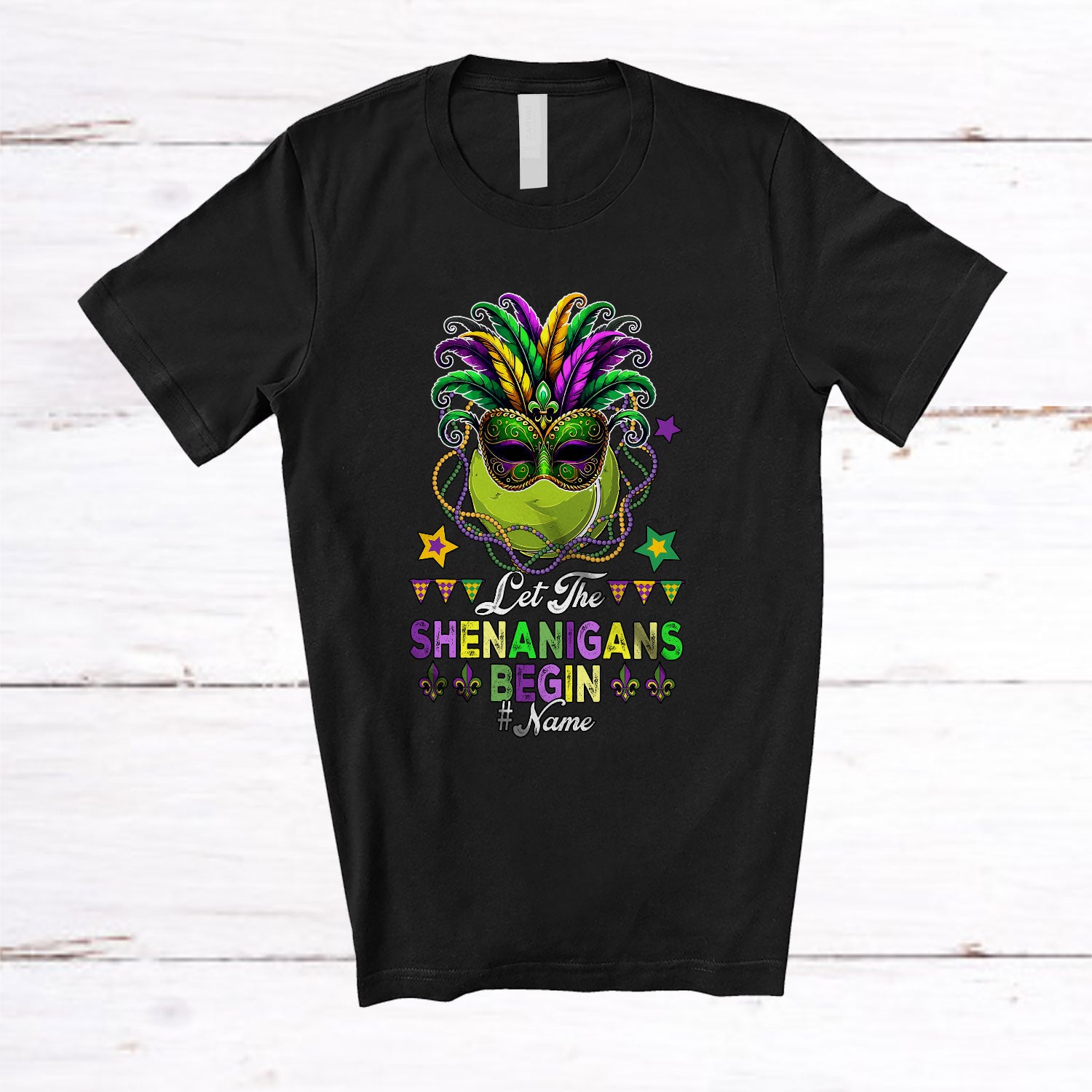 Personalized Custom Name Let The Shenanigans Begin; Joyful Mardi Gras Masked Tennis Beads T-Shirt
