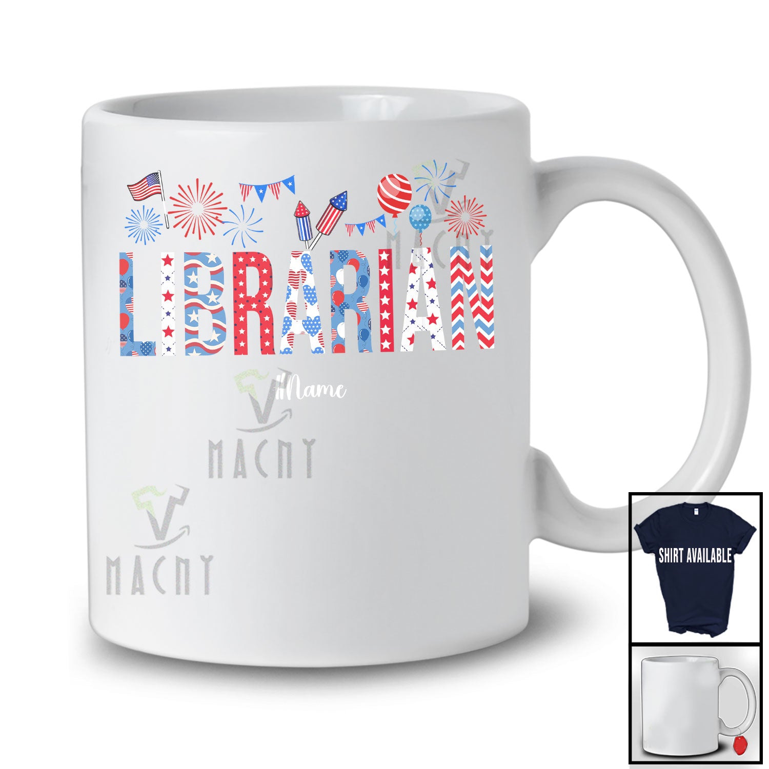 Personalized Custom Name Librarian; Amazing 4th Of July US Flag Patriotic; Jobs Proud T-Shirt. This cotton t-shirt is a durable staple product with a classic fit. One of the most popular items, it has a relaxed style made for everyday and casual wear.