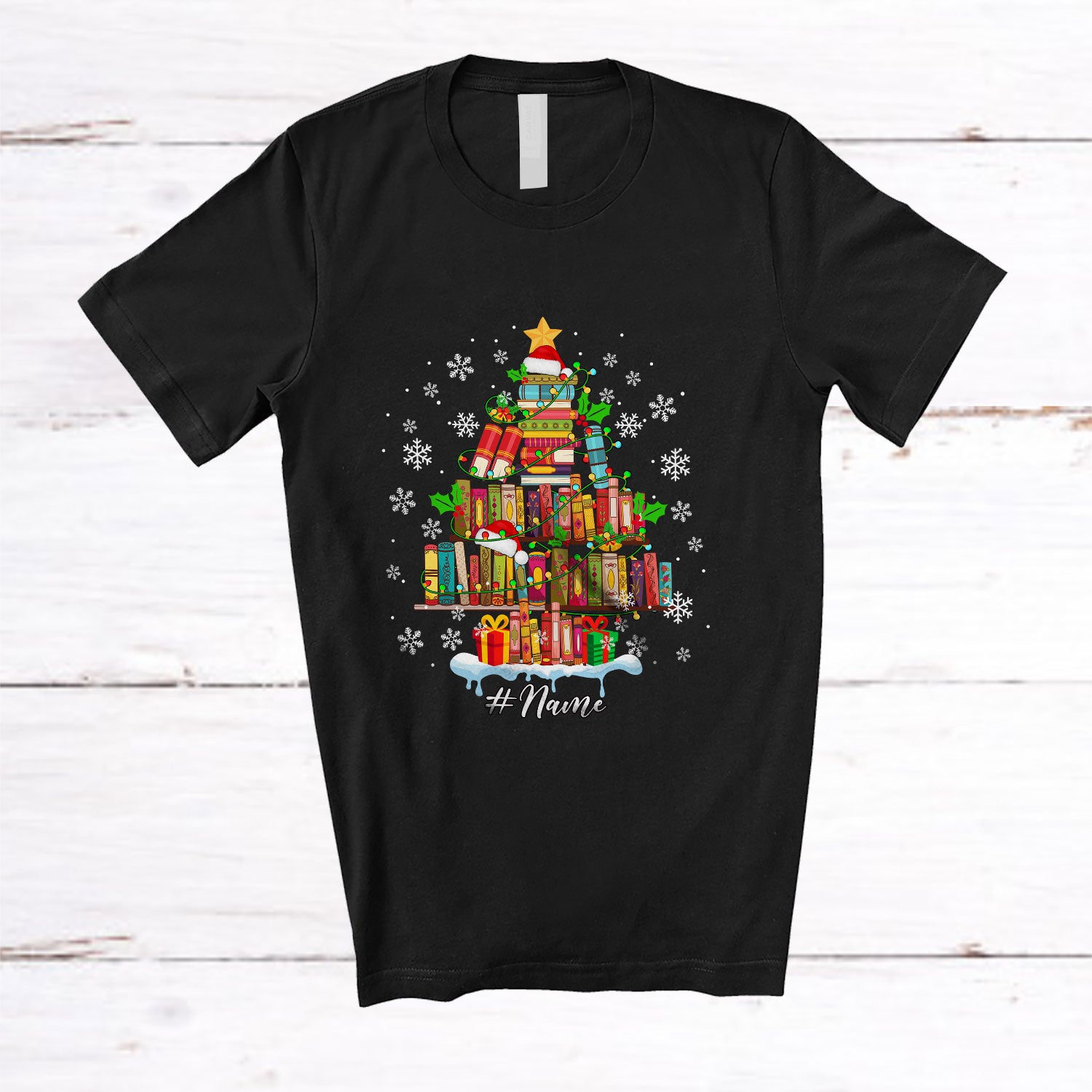 Personalized Custom Name Librarian Tools Christmas Tree; Amazing X-mas Lights Snow Proud Jobs T-Shirt. This cotton t-shirt is a durable staple product with a classic fit. One of the most popular items, it has a relaxed style made for everyday and casual wear.