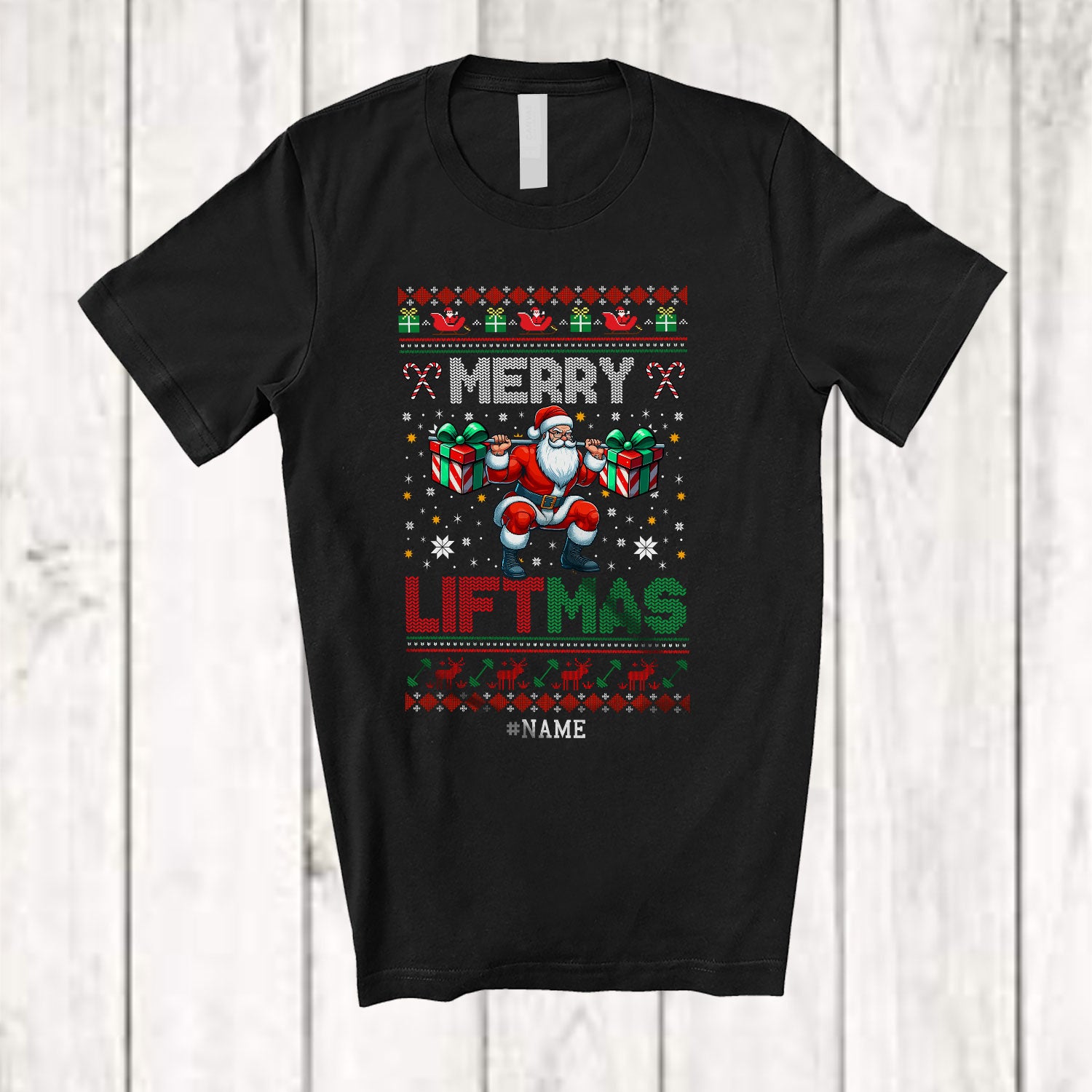 Personalized Custom Name Liftmas; Fantastic Christmas Sweater Santa Weightlifting Present Box T-Shirt