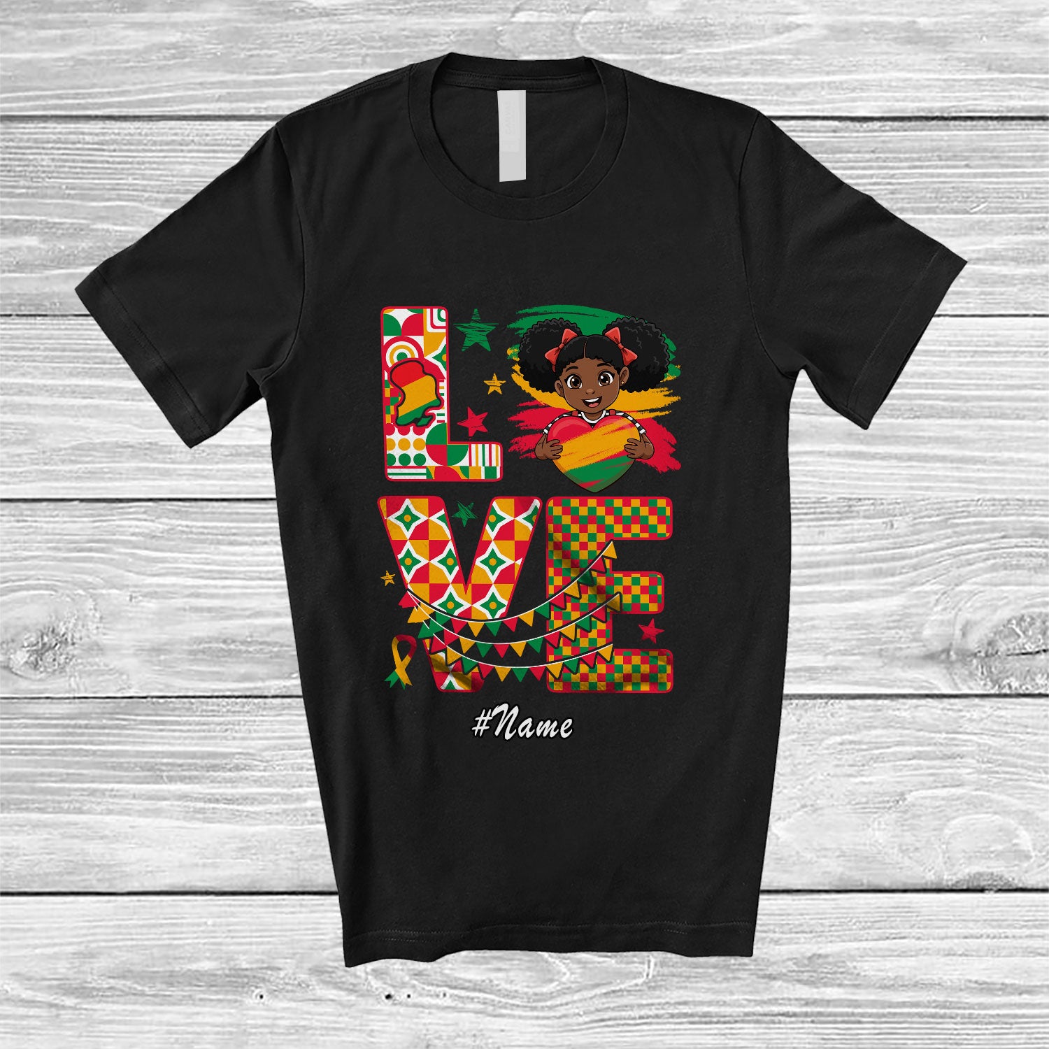 Personalized Custom Name LOVE; Lovely Black History Month Afro Girls Heart; African Family T-Shirt