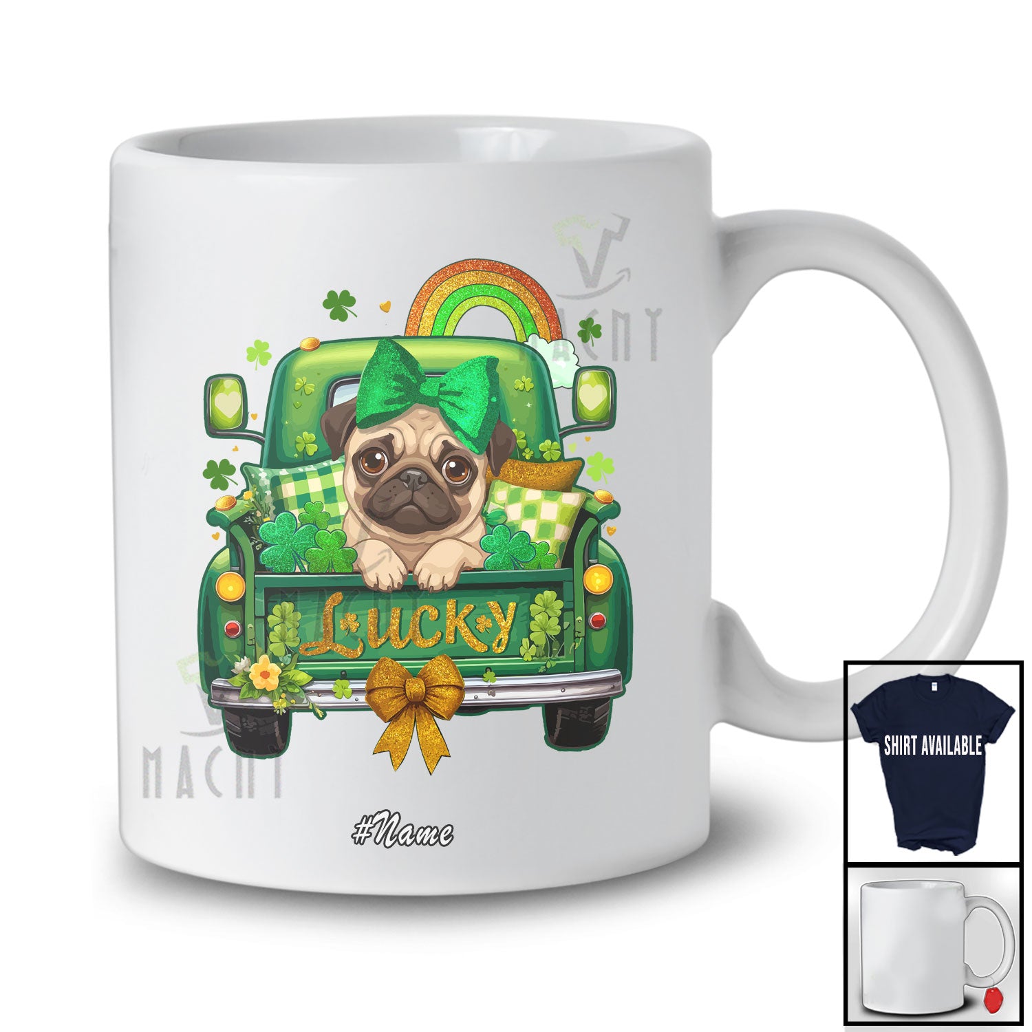 This Personalized Custom Name Lucky; Adorable St. Patrick's Day Pug Bow Tie On Pickup Truck T-Shirt is great idea gift for your family, friends in this birthday, christmas, mother's day, father's day, patrick's day or any holiday.