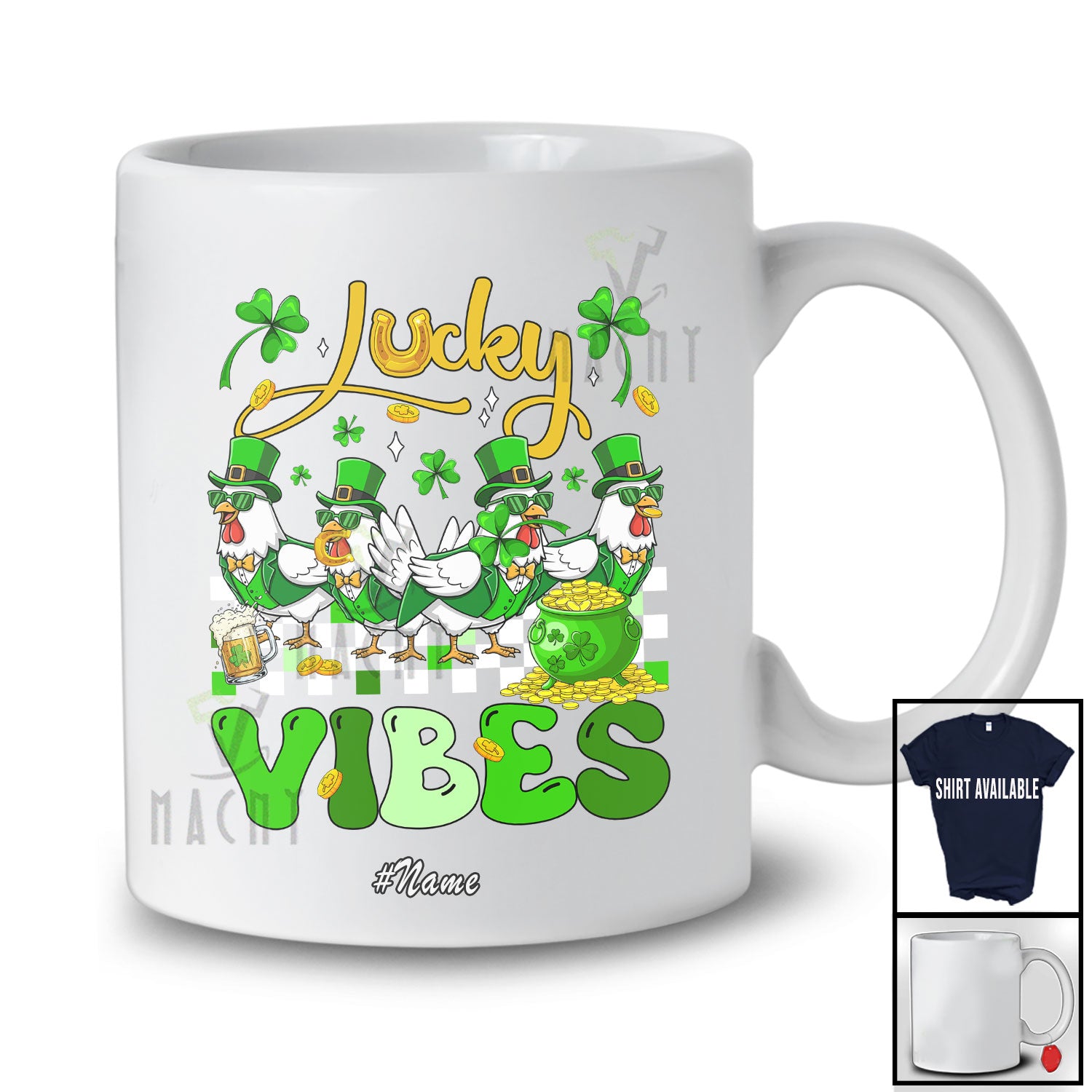 This Personalized Custom Name Lucky Vibes; Humorous St. Patrick's Day Four Chickens Farmer; Shamrock T-Shirt is great idea gift for your family, friends in this birthday, christmas, mother's day, father's day, patrick's day or any holiday.