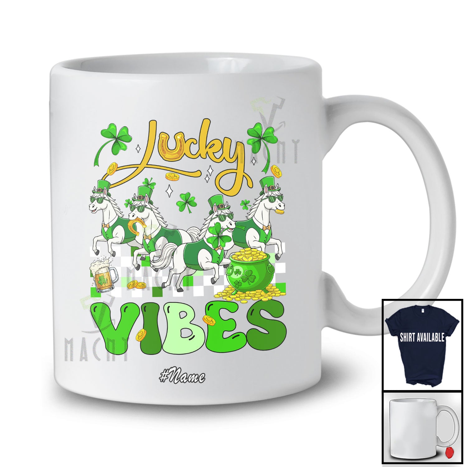The Personalized Custom Name Lucky Vibes; Humorous St. Patrick's Day Four Horses Farmer; Shamrock T-Shirt is far and away, one of our most popular items. People can't seem to get enough of it.