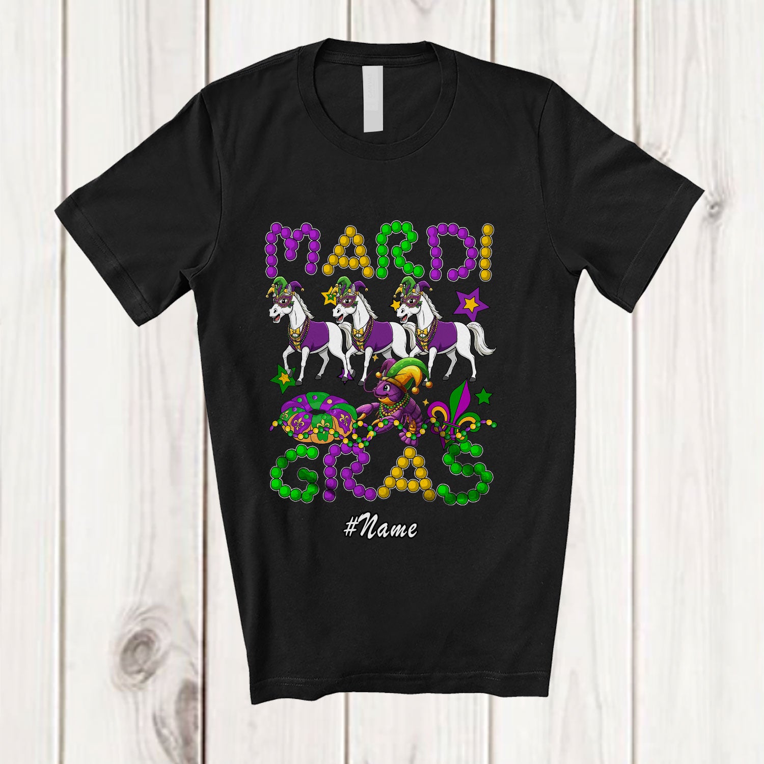Personalized Custom Name Mardi Gras; Joyful Three Horse Farmer; Beads King Cake Crawfish T-Shirt