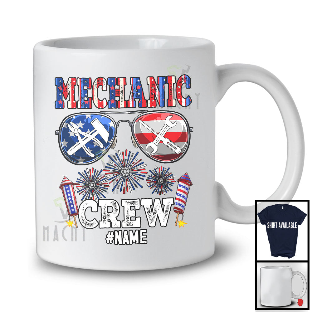 Personalized Custom Name Mechanic Crew, Joyful 4th Of July USA Sunglasses, Careers Patriotic T-Shirt