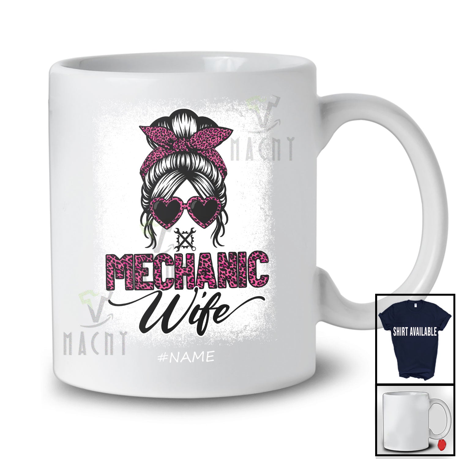The Personalized Custom Name Mechanic Wife; Joyful Mother's Day Leopard Messy Bun Mechanic T-Shirt was built with people like you in mind. Something to keep you happy. Every. Single. Day.