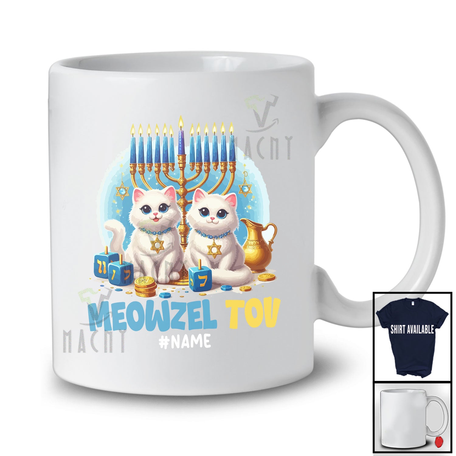 Personalized Custom Name Meowzel Tov; Lovely Hanukkah Menorah Two Cats Owner Lover; Family T-Shirt. This cotton t-shirt is a durable staple product with a classic fit. One of the most popular items, it has a relaxed style made for everyday and casual wear.