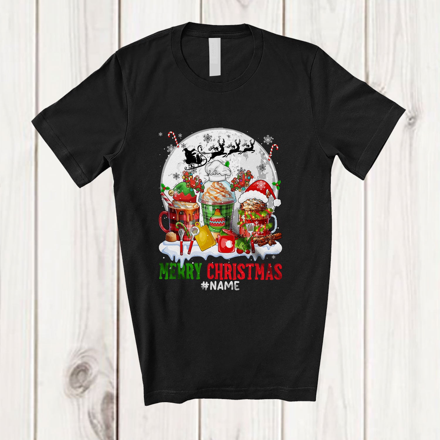 Personalized Custom Name Merry Christmas; Amazing X-mas Moon Coffee With Lunch Lady Tools; Family T-Shirt
