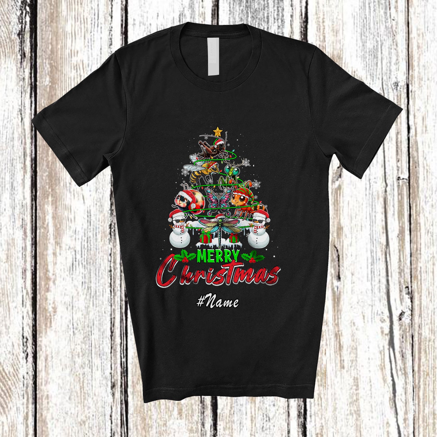 Personalized Custom Name Merry Christmas; Awesome Christmas Tree Butterfly Bee Insect T-Shirt