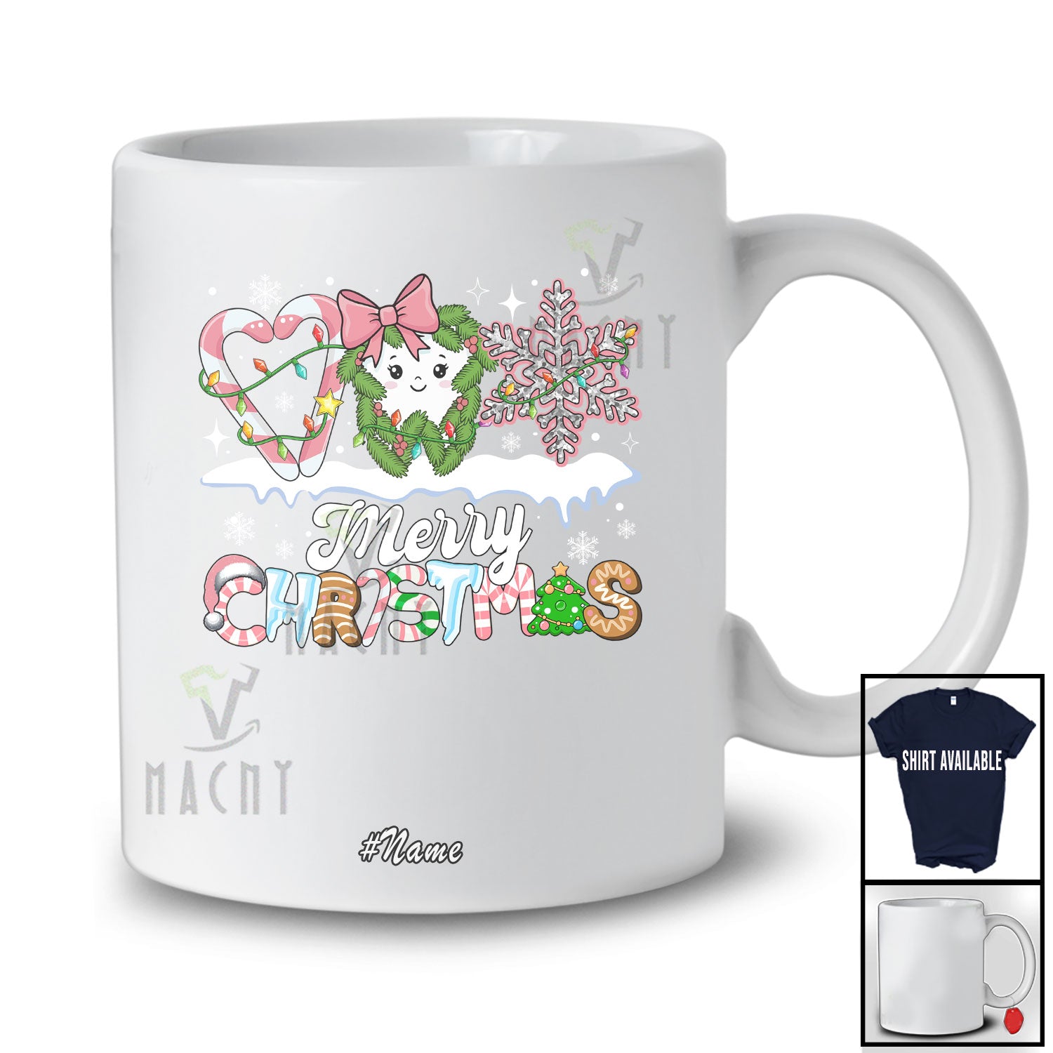Personalized Custom Name Merry Christmas; Lovely Pink Tooth Candy Canes; Dental Dentist T-Shirt