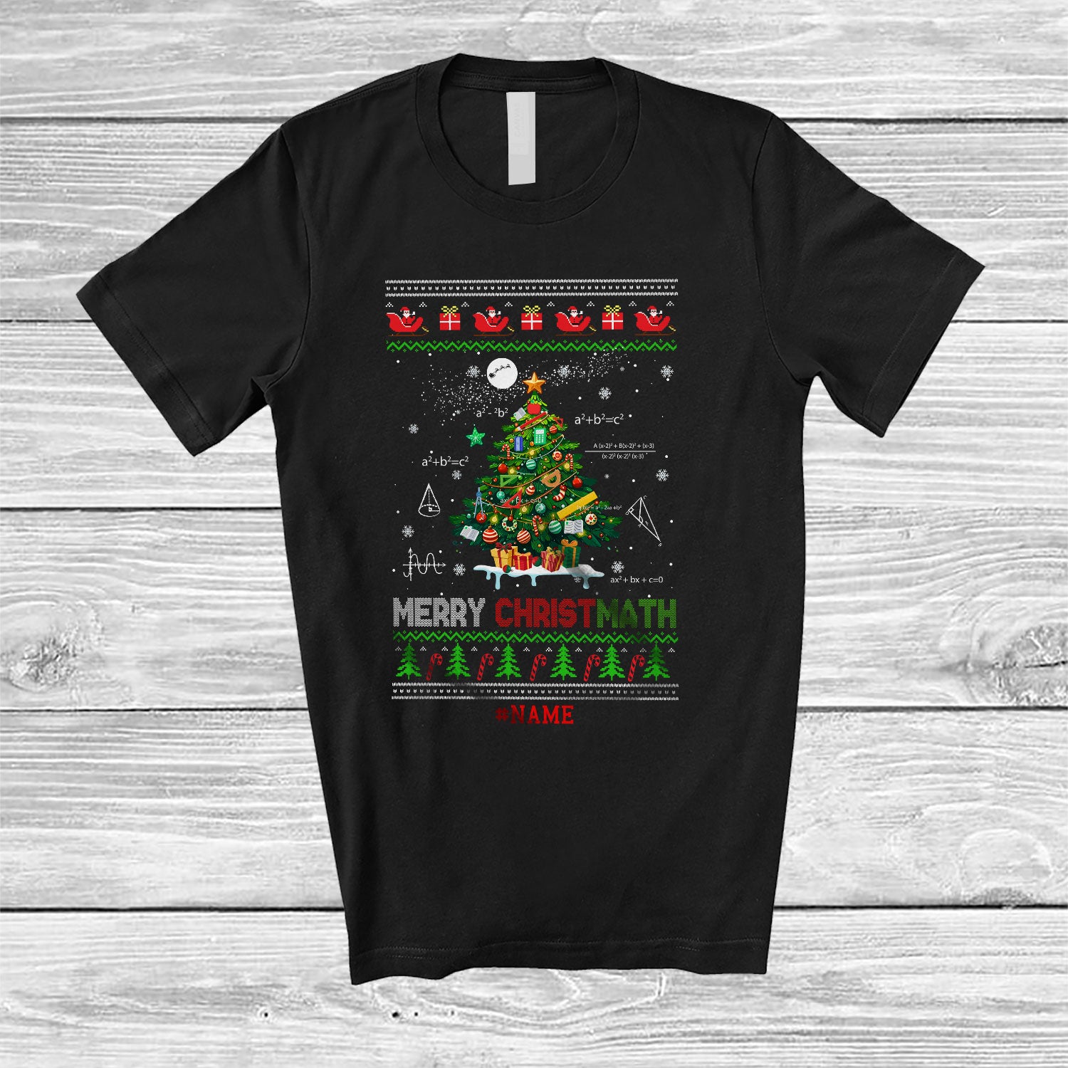 Personalized Custom Name Merry Christmath; Joyful Christmas Tree Math; Sweater Students Teacher T-Shirt. This cotton t-shirt is a durable staple product with a classic fit. One of the most popular items, it has a relaxed style made for everyday and casual wear.