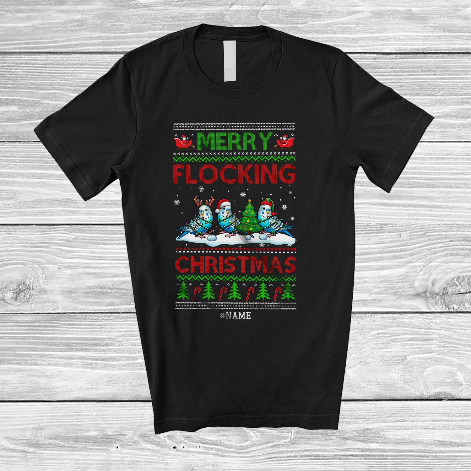 Personalized Custom Name Merry Flocking; Wonderful Christmas Sweater Three Budgerigar; Bird T-Shirt