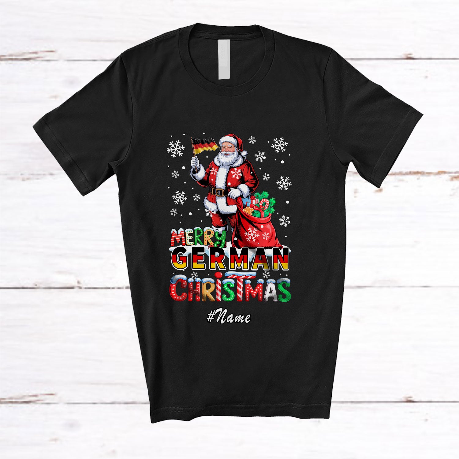 Personalized Custom Name Merry German Christmas; Lovely Santa German Flag Snow; Family T-Shirt