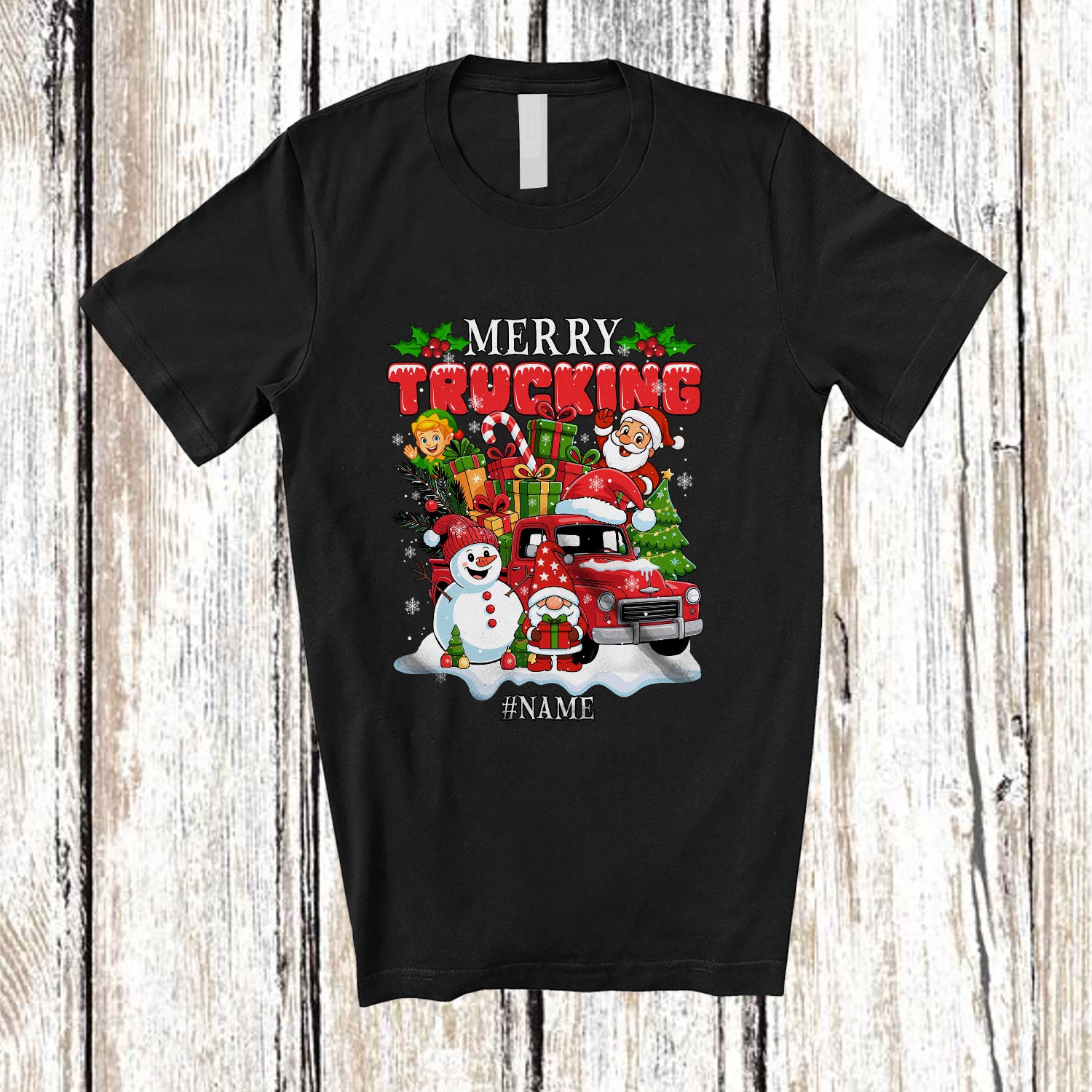 Personalized Custom Name Merry Trucking; Joyful Christmas Santa On Pickup Truck Driver T-Shirt