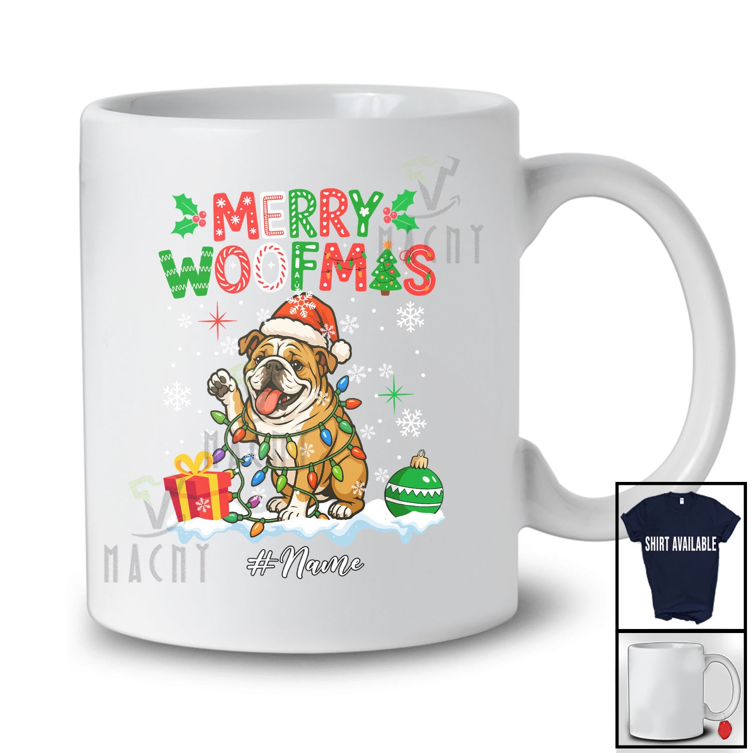 new MacnyStore - Personalized Custom Name Merry Woofmas; Joyful Christmas Lights Santa Bulldog Owner Family T-Shirt – Macnystore