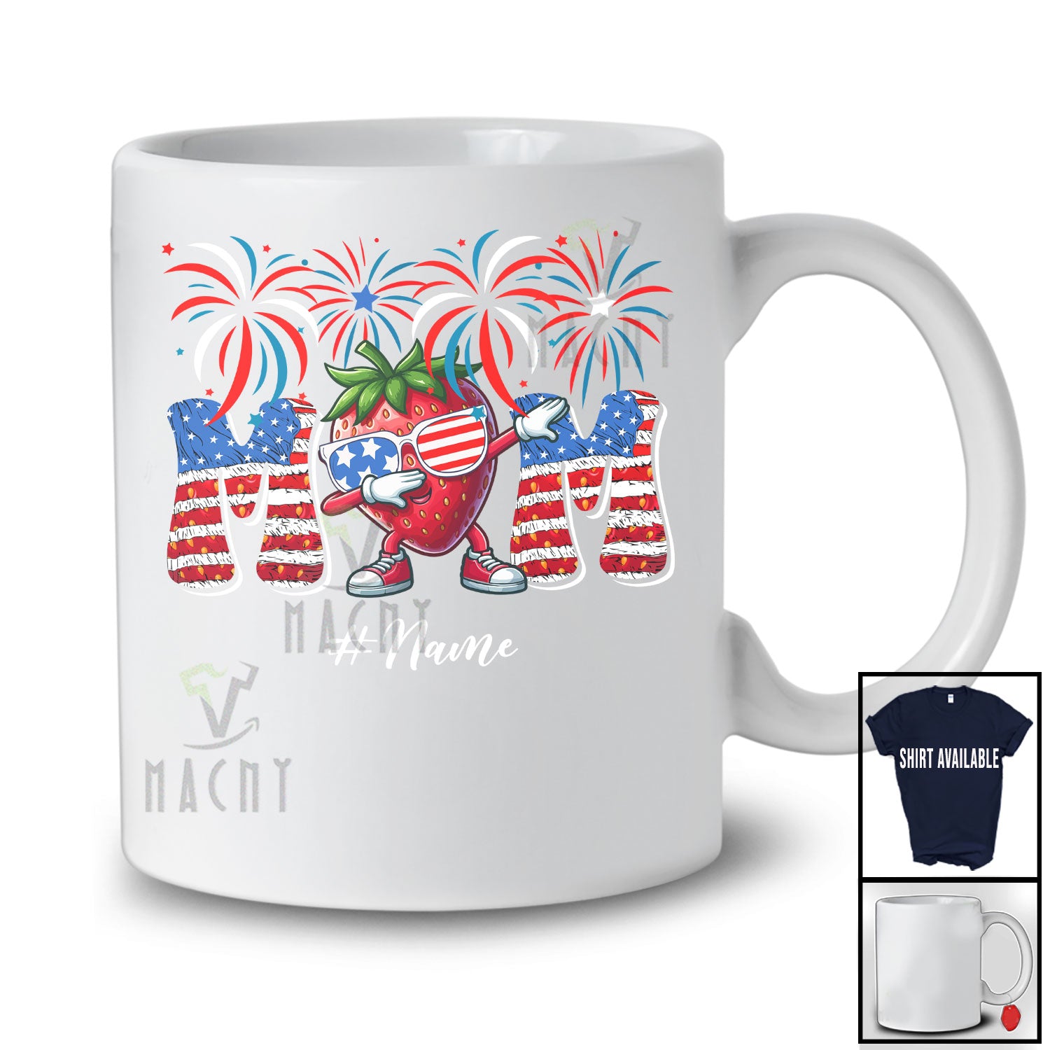 • Personalized Custom Name Mom; Humorous 4th Of July Mother's Day Dabbing Strawberry Fruit T-Shirt. This cotton t-shirt is a durable staple product with a classic fit. One of the most popular items, it has a relaxed style made for everyday and casual wear.