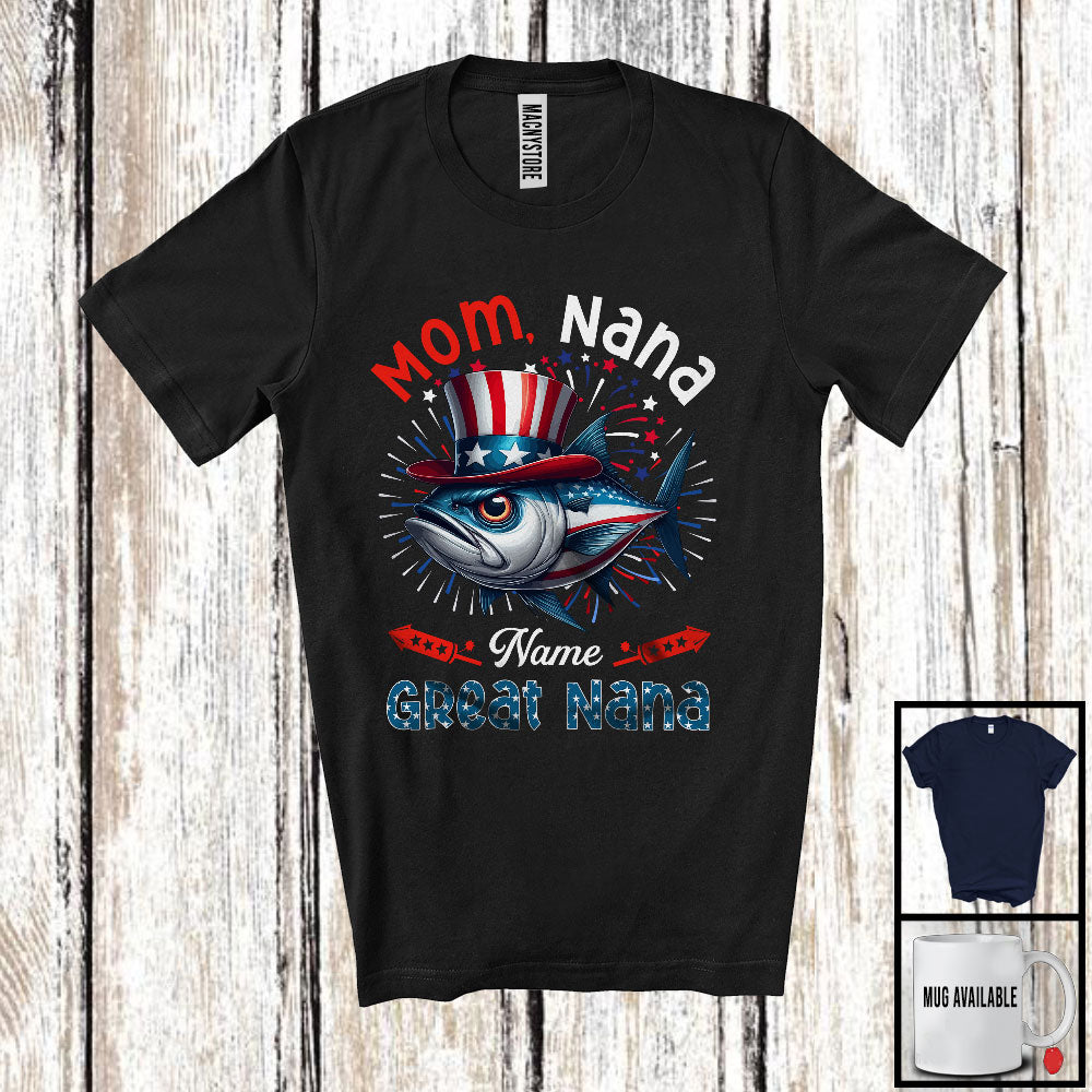 Personalized Custom Name Mom Nana Great Nana, Amazing 4th Of July Tuna Fish Family Group T-Shirt