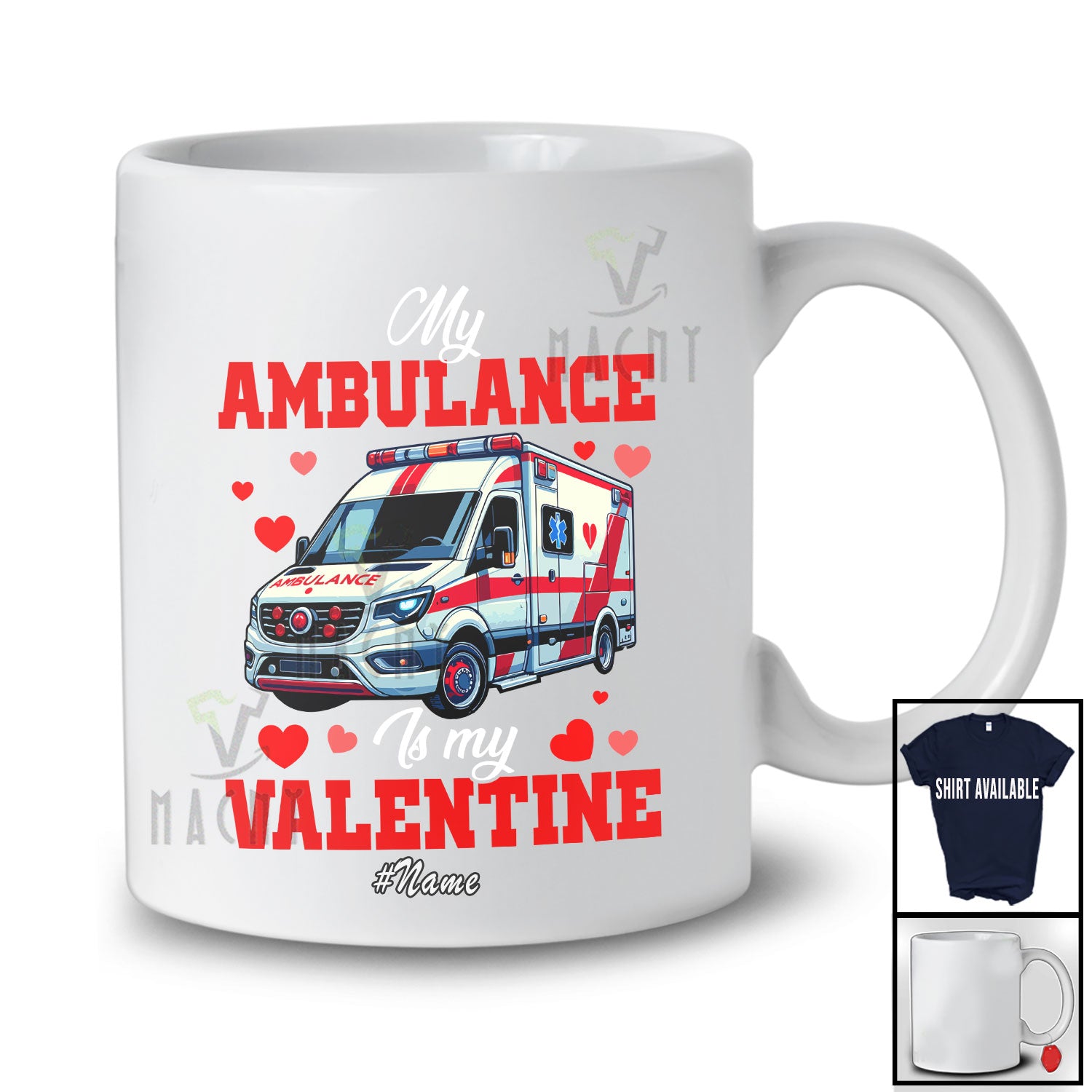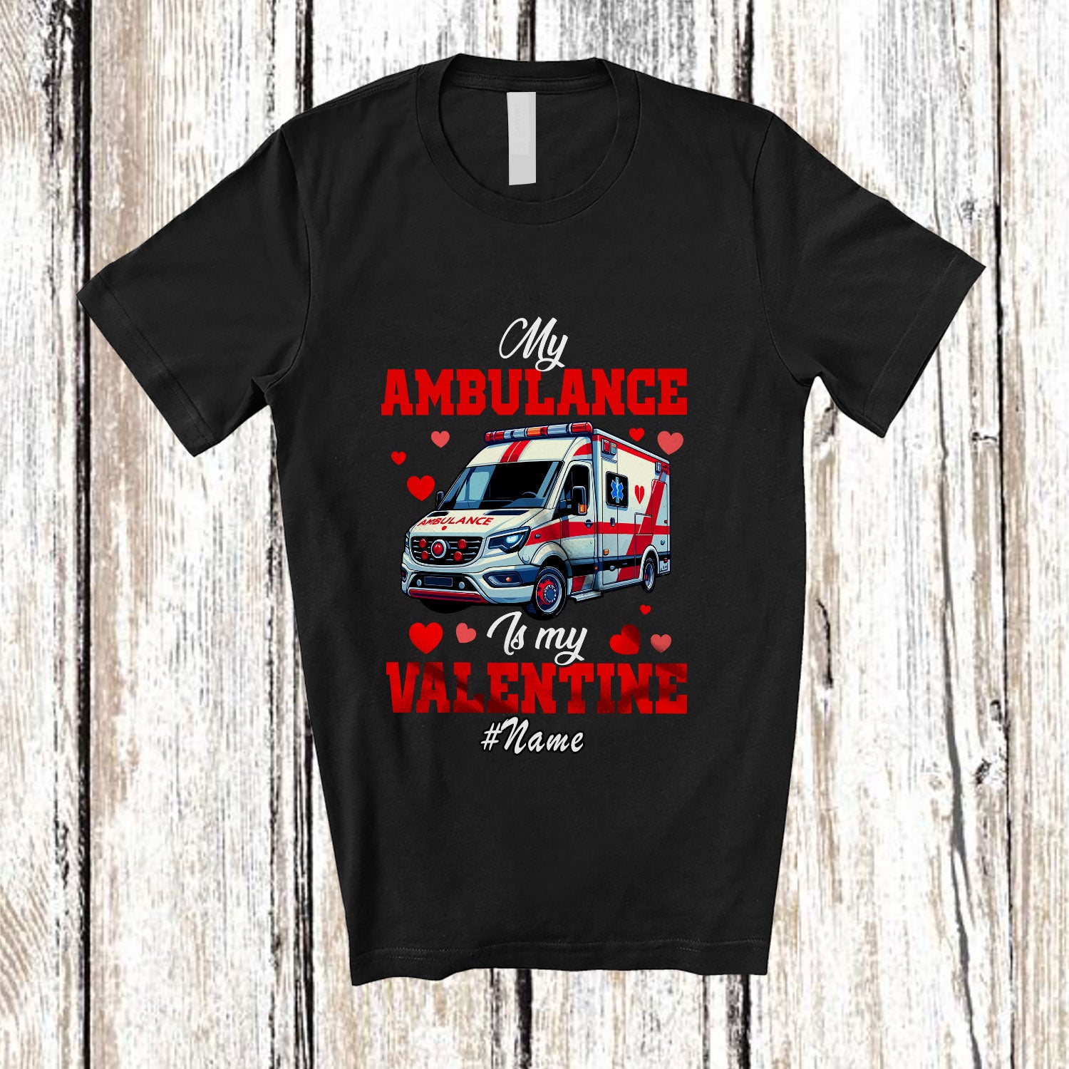 • Personalized Custom Name My Ambulance Is My Valentine; Amusing Ambulance Driver Hearts T-Shirt. This cotton t-shirt is a durable staple product with a classic fit. One of the most popular items, it has a relaxed style made for everyday and casual wear.