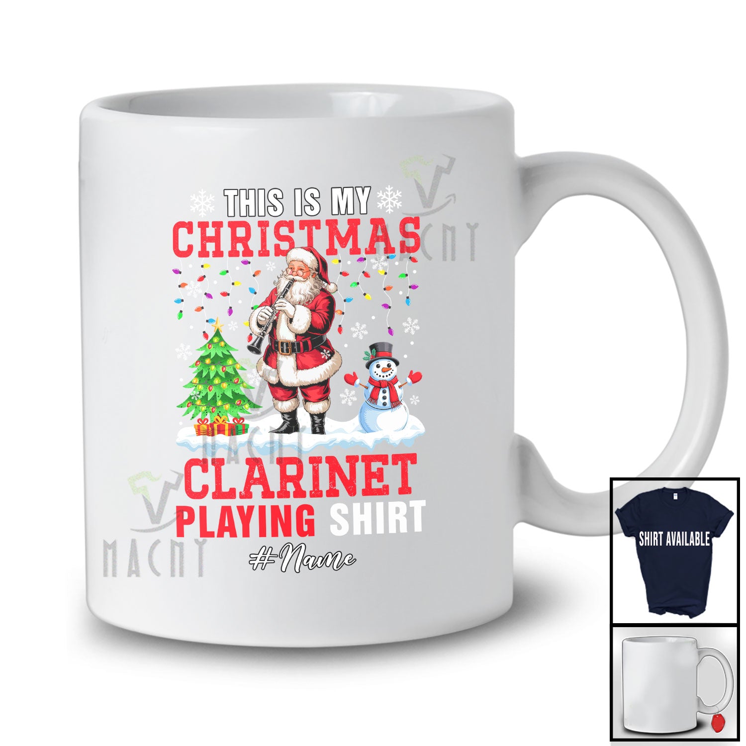 Personalized Custom Name My Christmas Clarinet Playing Shirt; Joyful Santa Musical Instruments T-Shirt