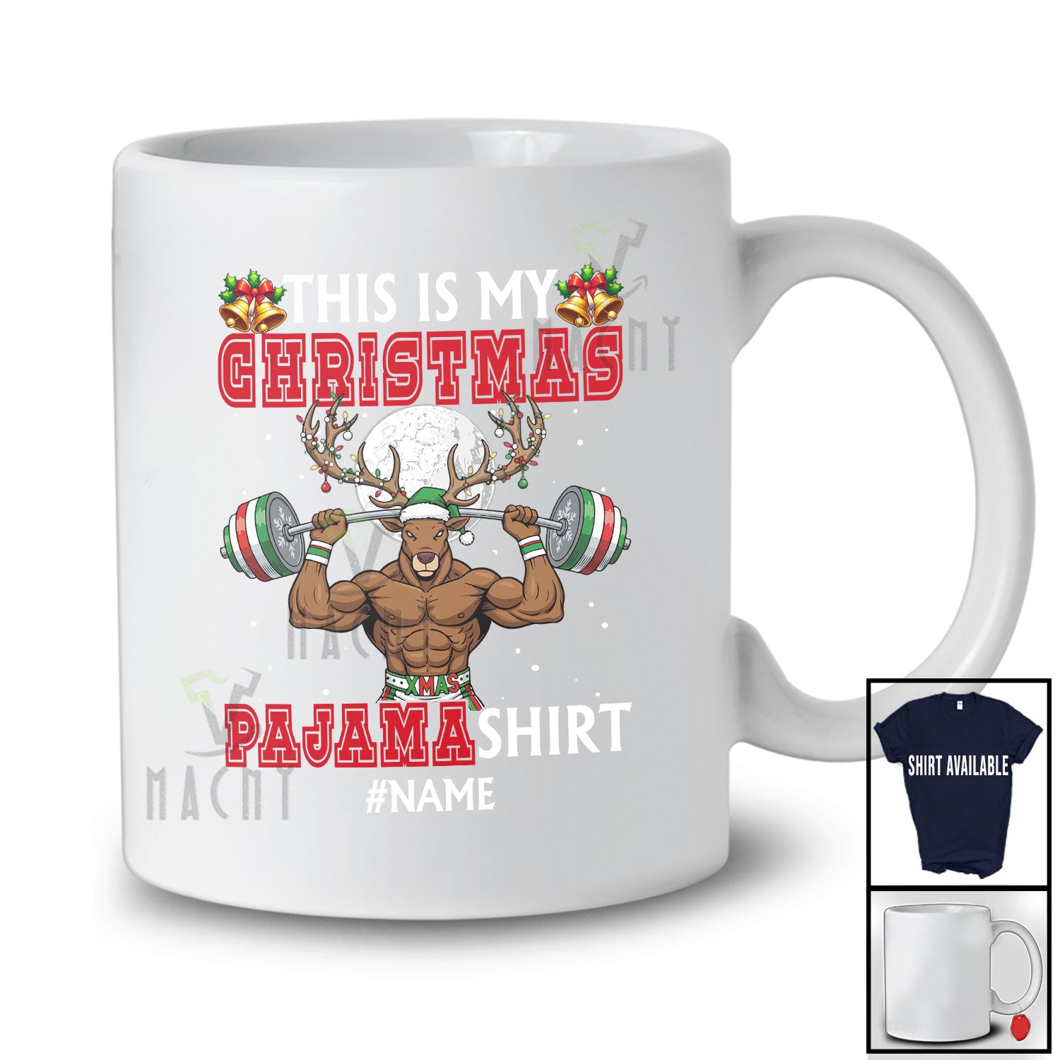 • Personalized Custom Name My Christmas Pajama Shirt; Joyful Reindeer Weight Lifting; Workout T-Shirt. This cotton t-shirt is a durable staple product with a classic fit. One of the most popular items, it has a relaxed style made for everyday and casual wear.