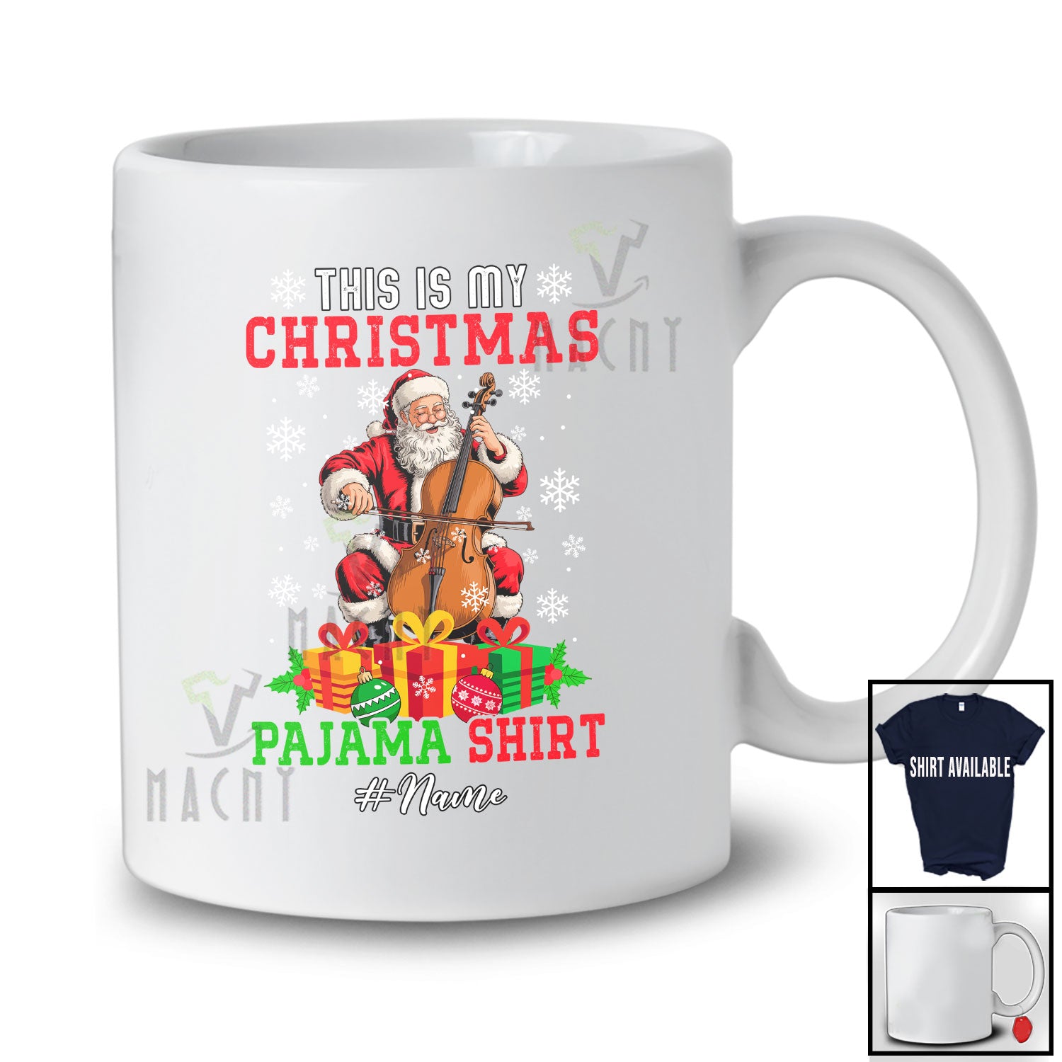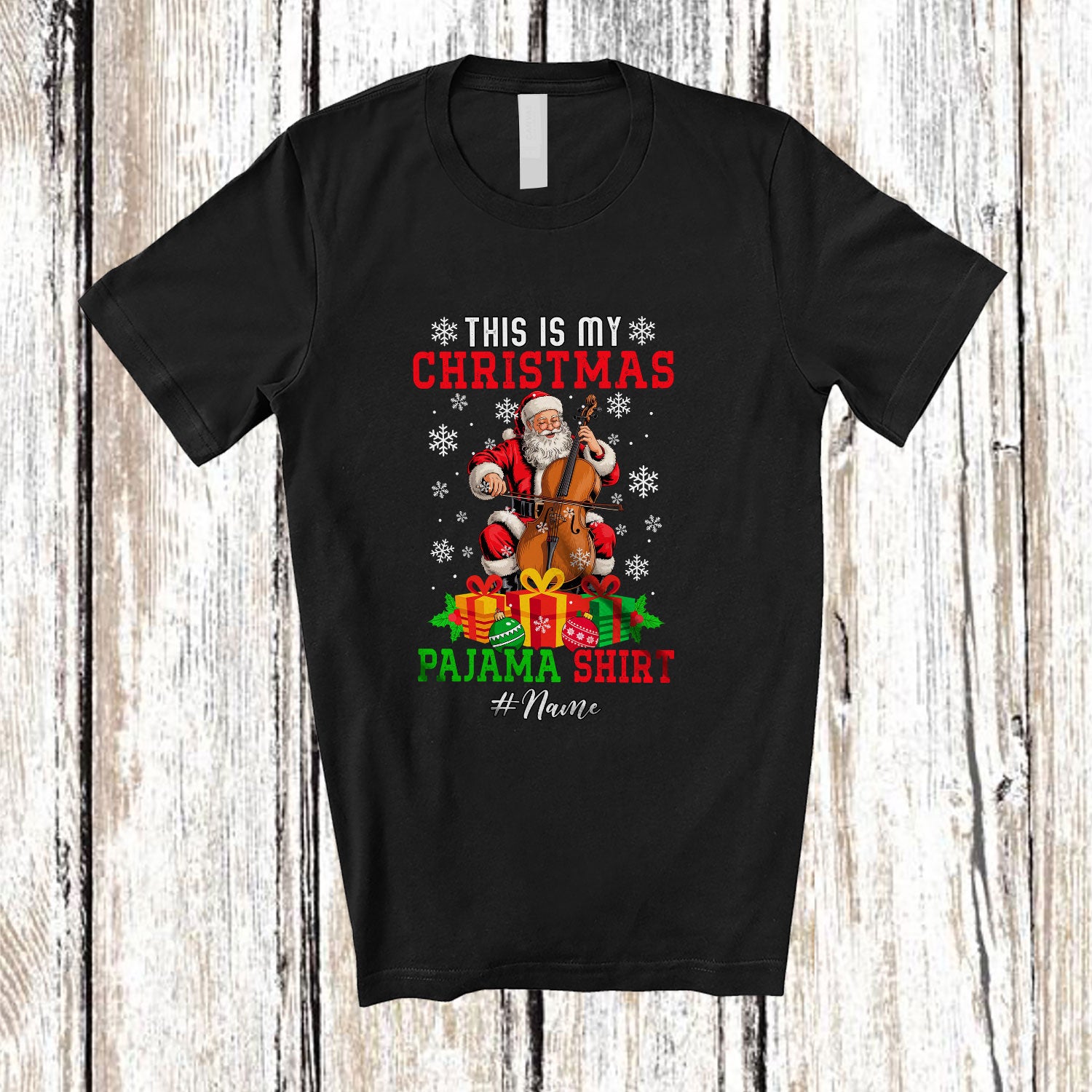 Personalized Custom Name My Christmas Pajama Shirt; Joyful Santa Cello Player Musician T-Shirt