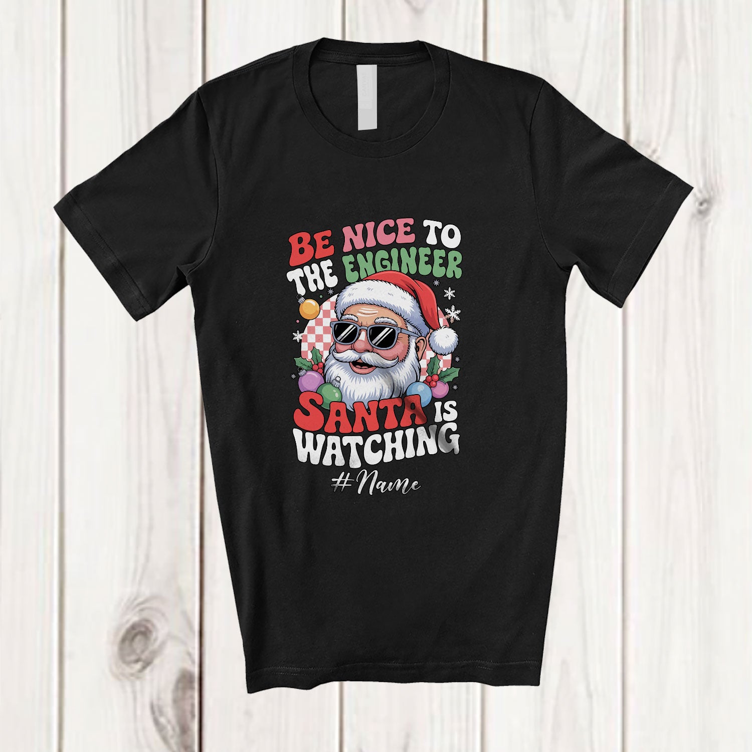 Personalized Custom Name Nice To The Engineer; Proud Christmas Santa Face; Careers Jobs T-Shirt
