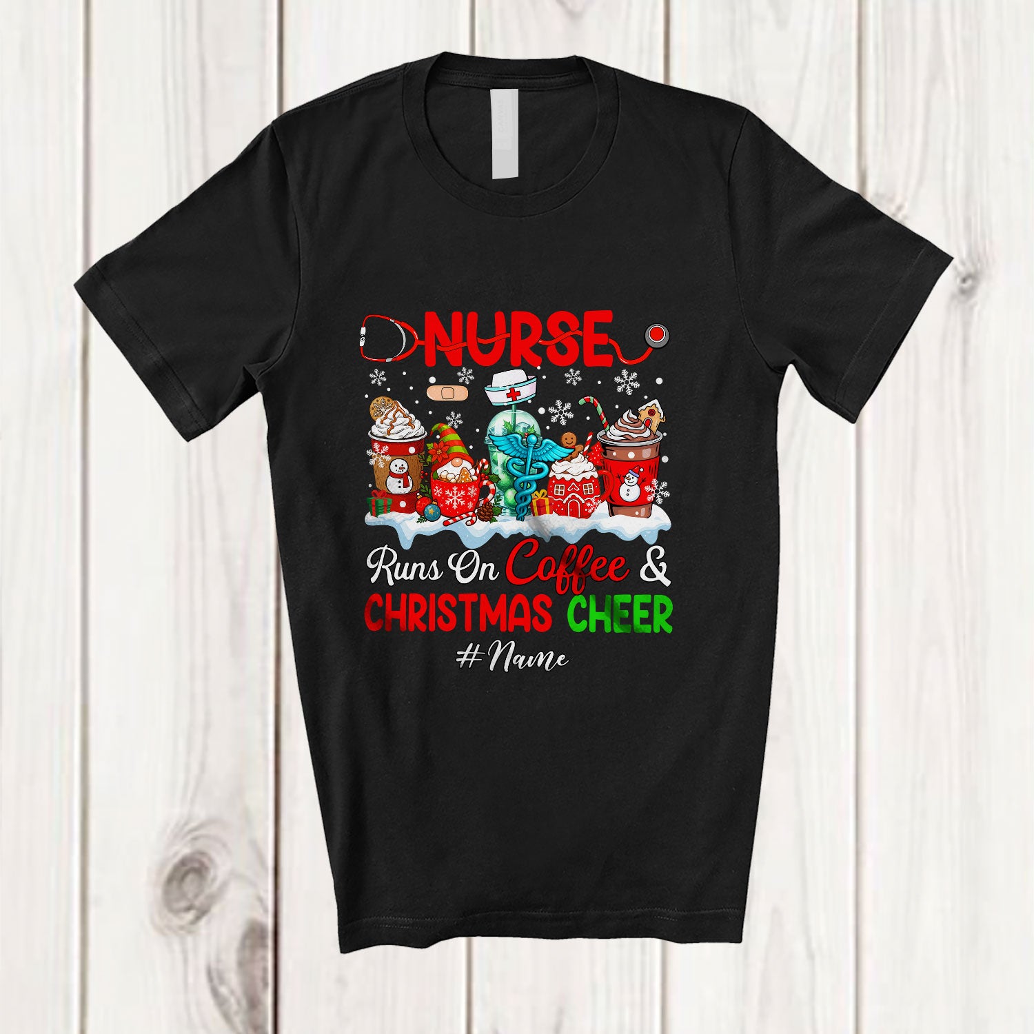 Personalized Custom Name Nurse Runs On Coffee Christmas Cheer; Lovely Snow Jobs T-Shirt