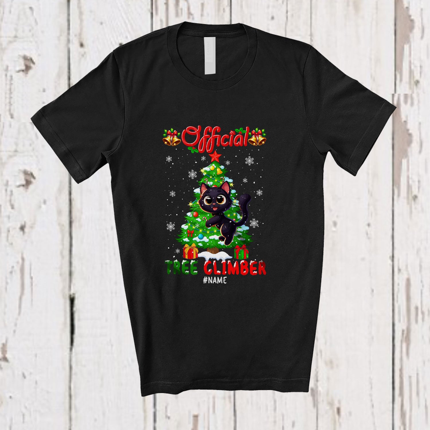 The Personalized Custom Name Official Tree Climber; Lovely Christmas Black Cat Damage; Family T-Shirt destined to impress, and priced at only $12.95, for a limited time.