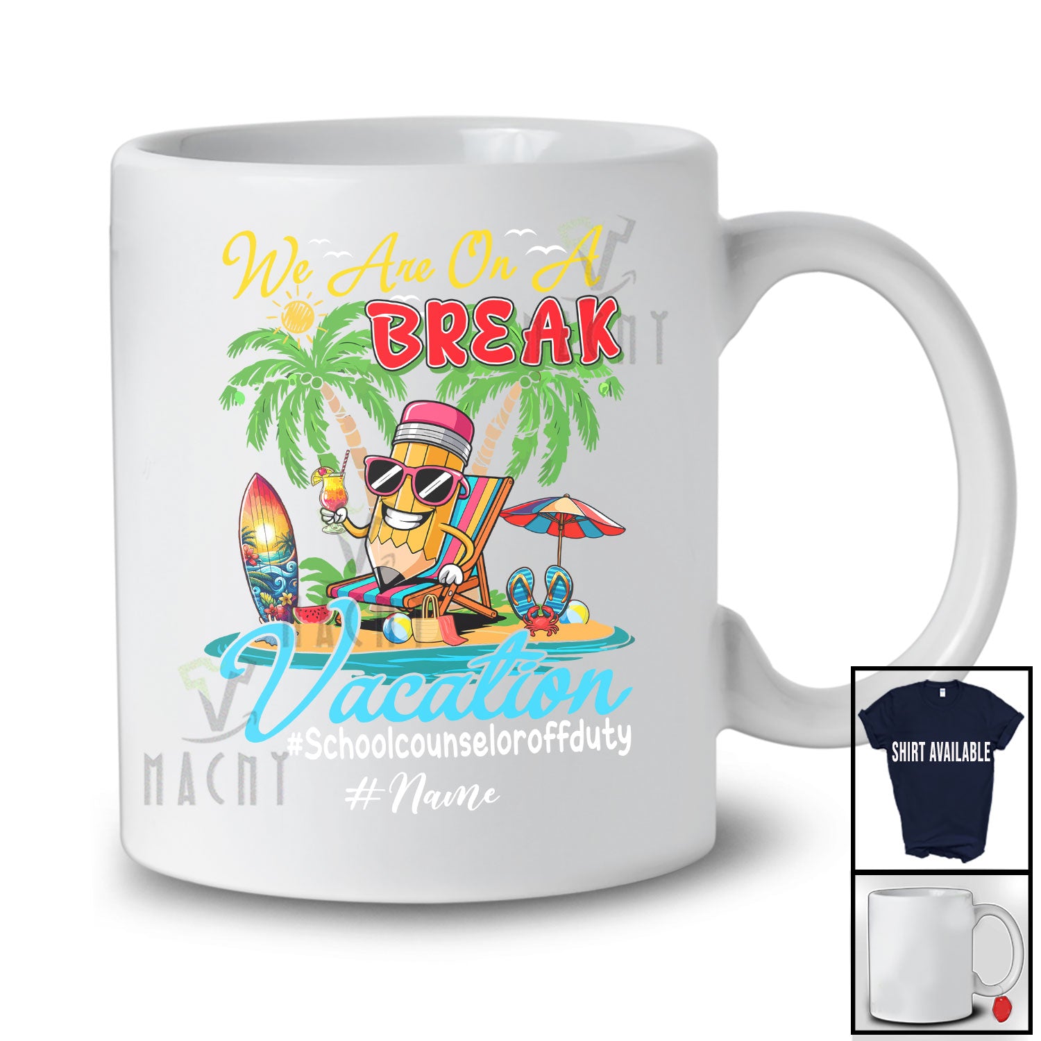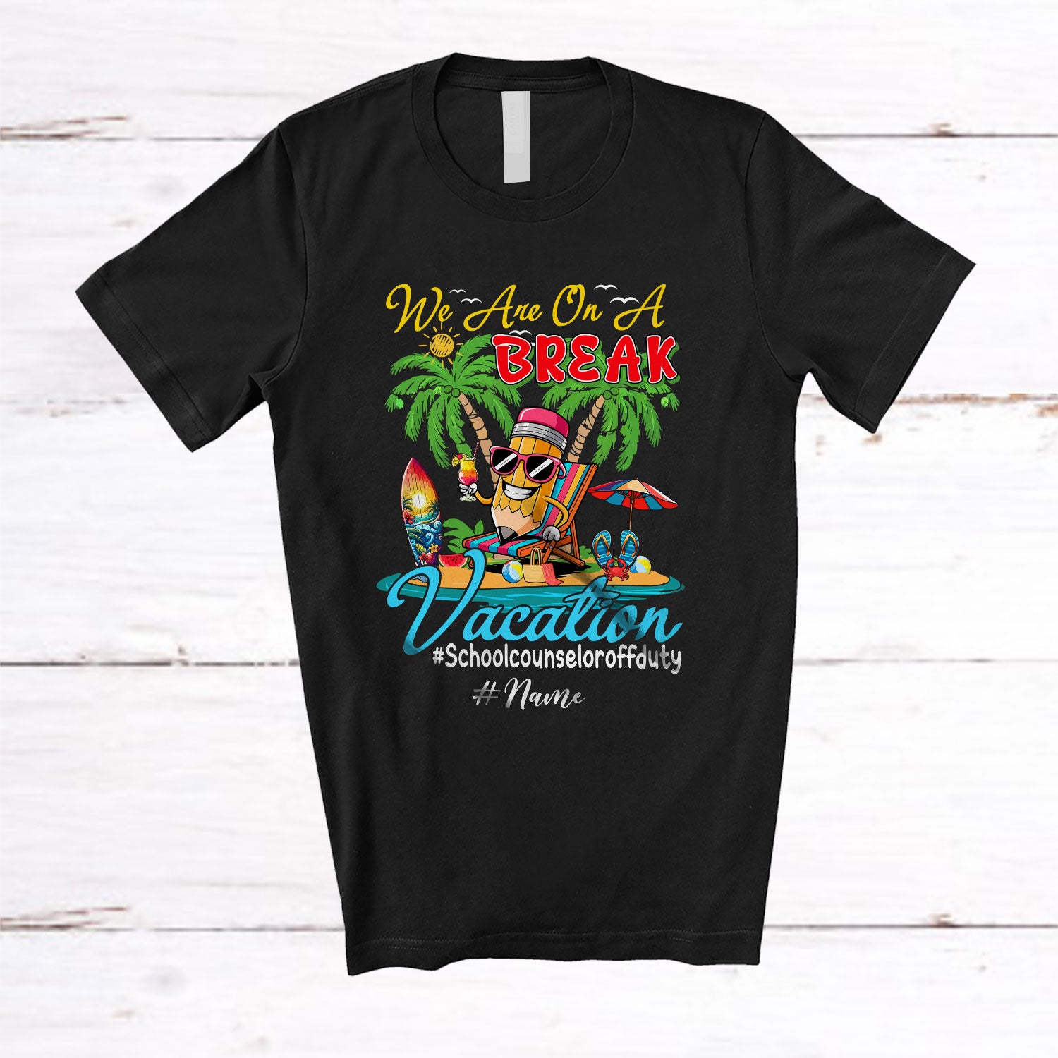 Every product is unique, just like you. If you're looking for a product that fits the mold of your life, the Personalized Custom Name On A Break School Counselor; Lovely Summer Vacation Pencil Beach T-Shirt is for you.