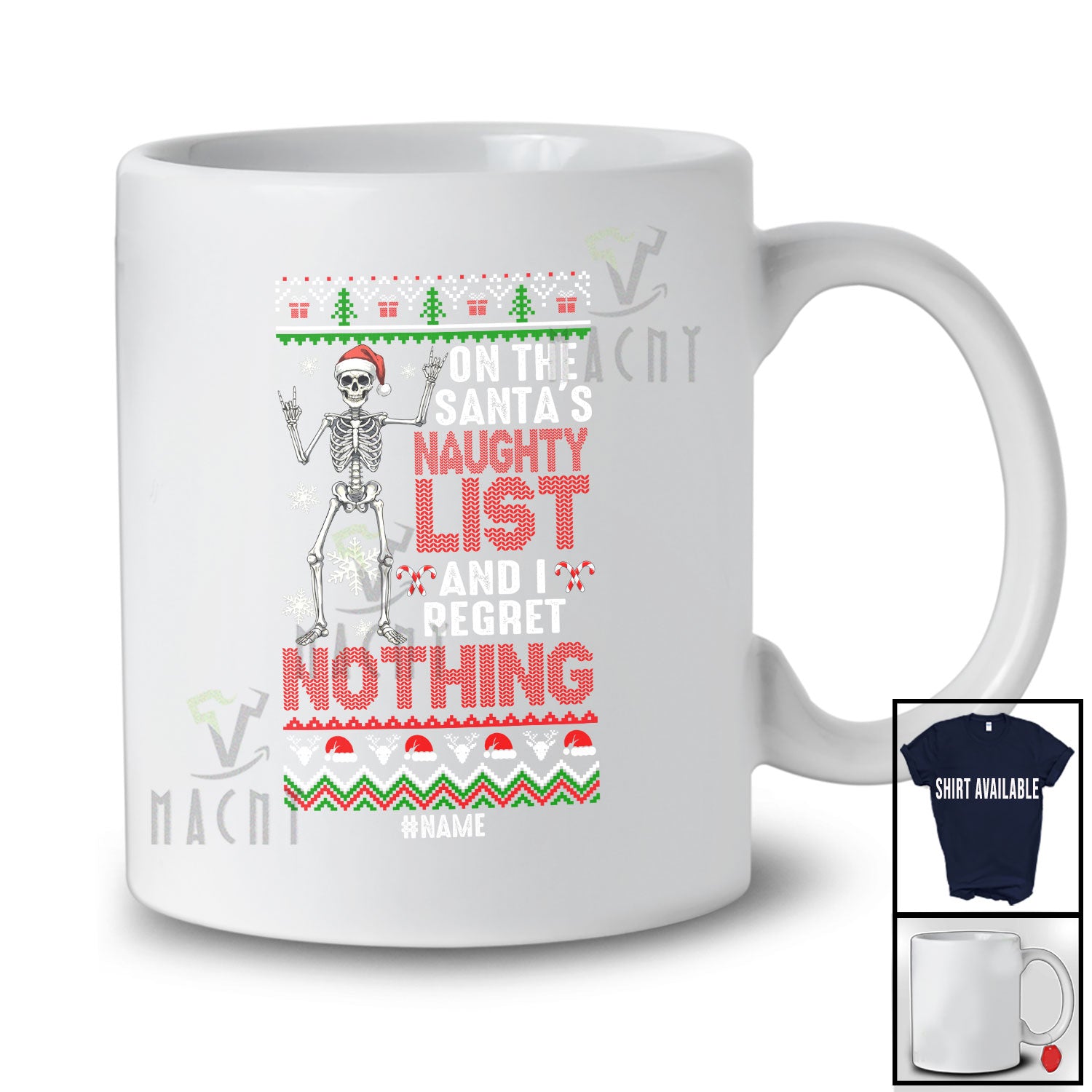 new MacnyStore - Personalized Custom Name On The Santa's Naughty List; Scary Christmas Skeleton Sweater T-Shirt – Macnystore