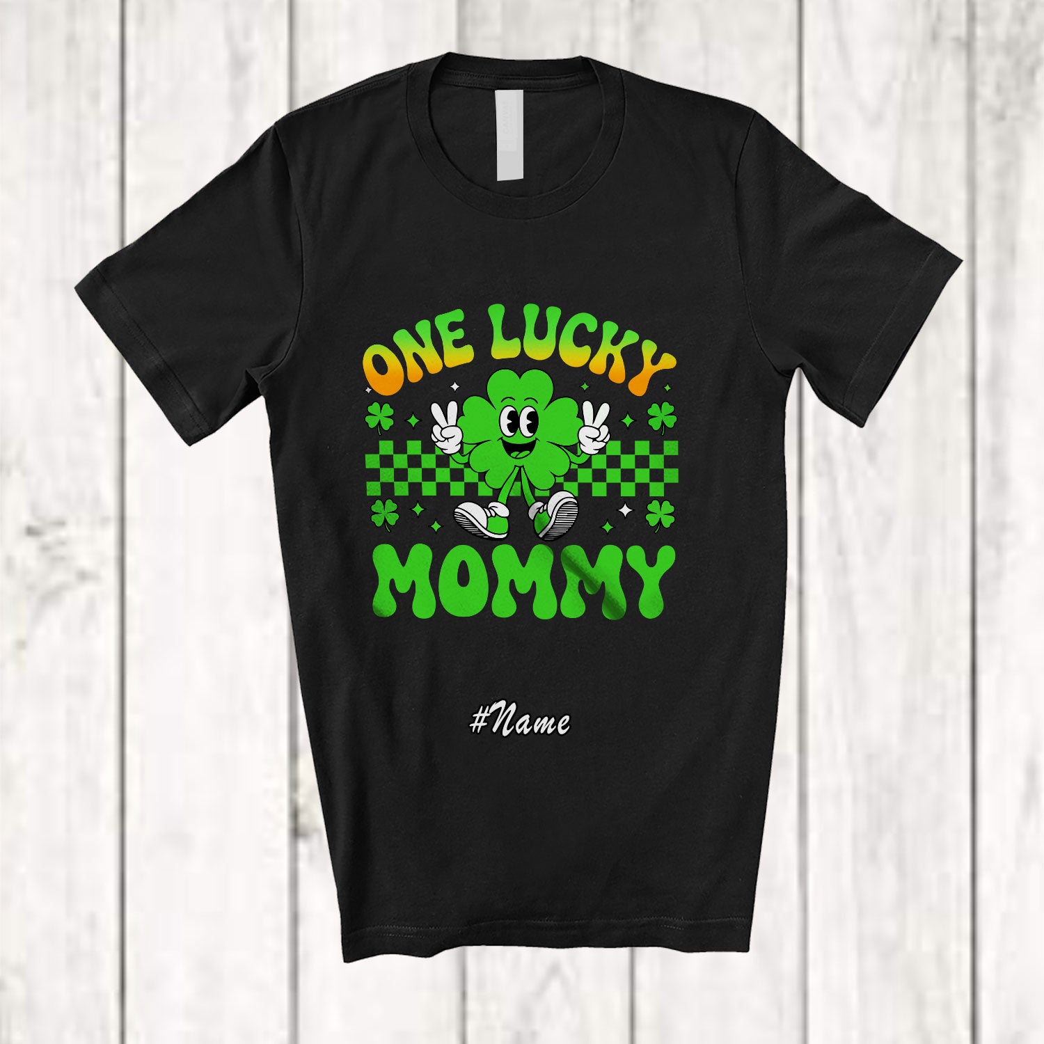 Personalized Custom Name One Lucky Mommy; Amusing St. Patrick's Day Shamrock Irish Family T-Shirt