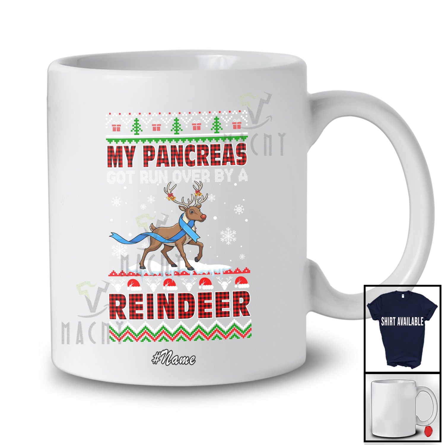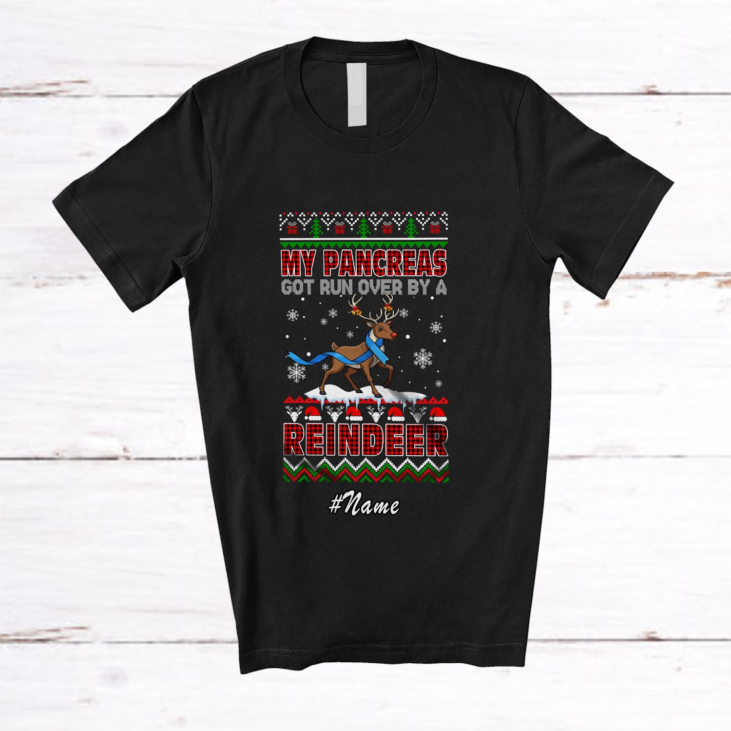 Personalized Custom Name Pancreas Run Over Reindeer; Joyful Christmas Sweater Diabetes Plaid T-Shirt. This cotton t-shirt is a durable staple product with a classic fit. One of the most popular items, it has a relaxed style made for everyday and casual wear.
