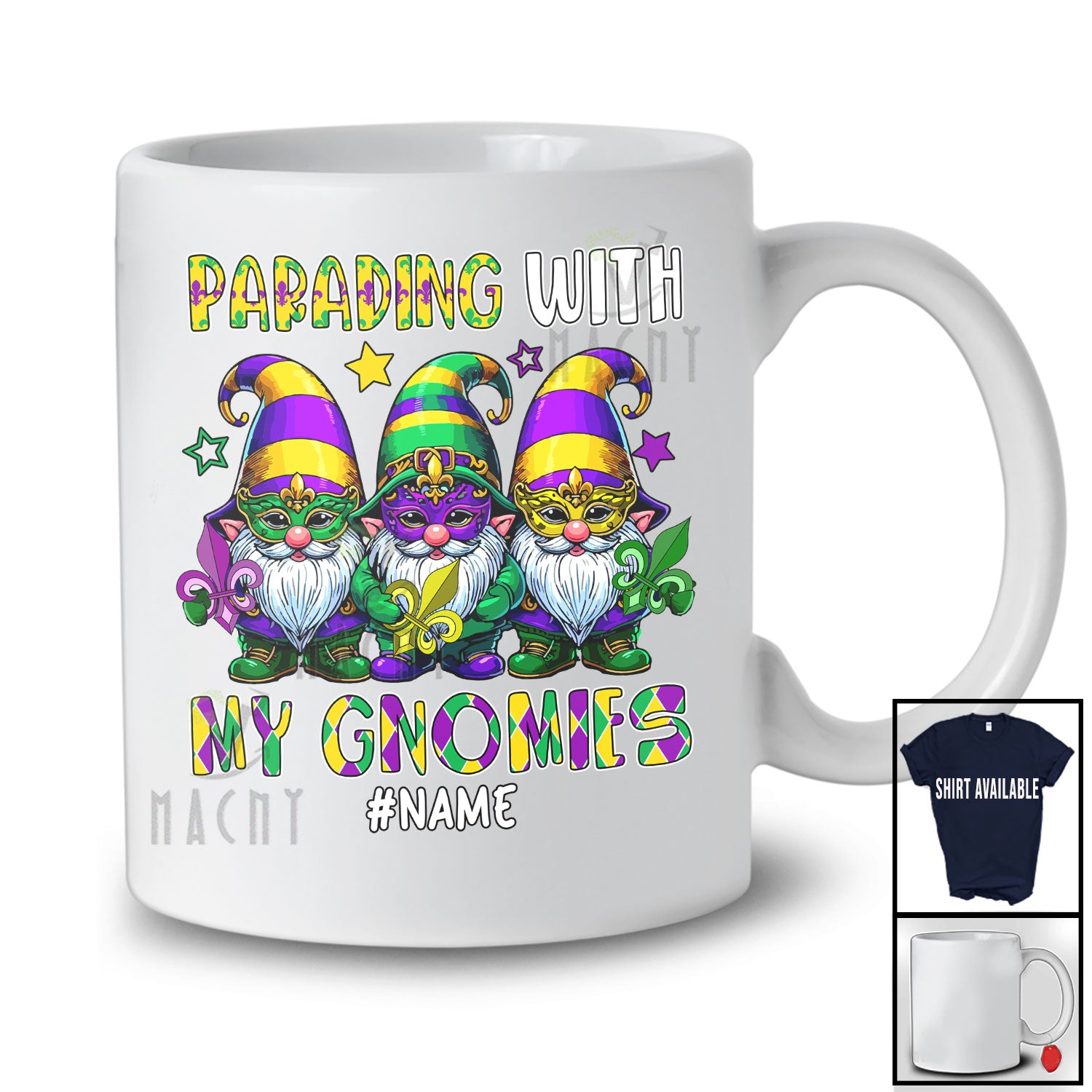 This Personalized Custom Name Parading With My Gnomes; Amusing Mardi Gras Mask Three Gnomes T-Shirt is great idea gift for your family, friends in this birthday, christmas, mother's day, father's day, patrick's day or any holiday.