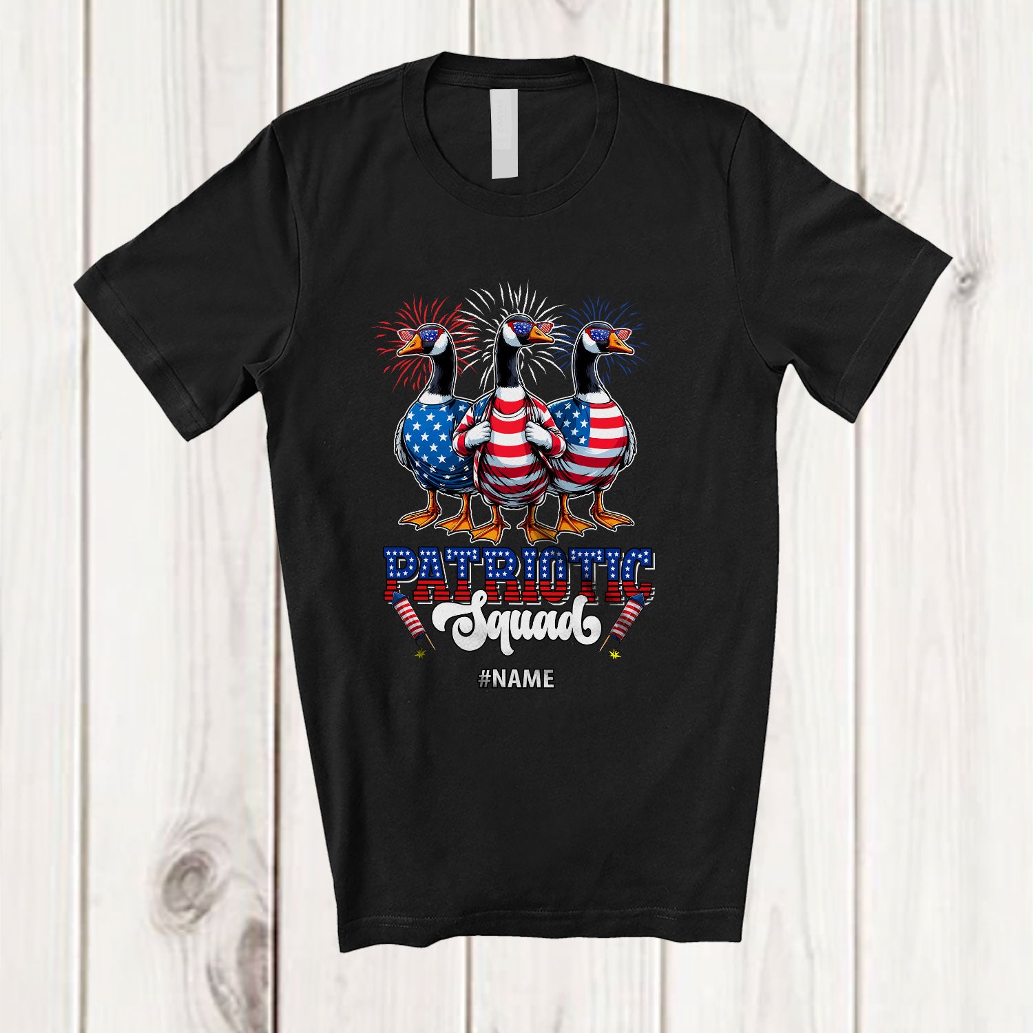 Personalized Custom Name Patriotic Squad; Lovely 4th Of July Three US Flag Goose; Farm Farmer T-Shirt