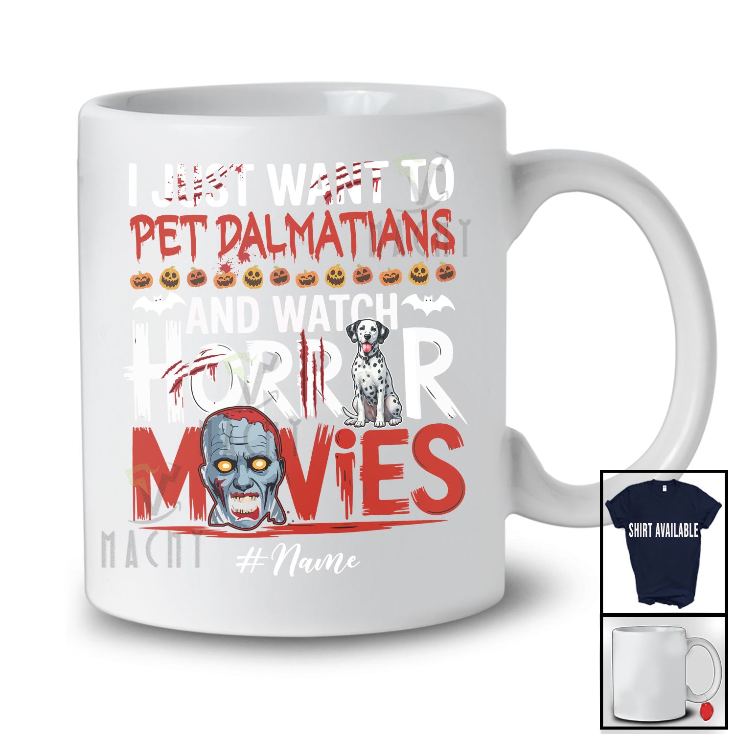 Personalized Custom Name Pet Dalmatians And Watch Horror Movies; Creepy Halloween Zombie T-Shirt. This cotton t-shirt is a durable staple product with a classic fit. One of the most popular items, it has a relaxed style made for everyday and casual wear.