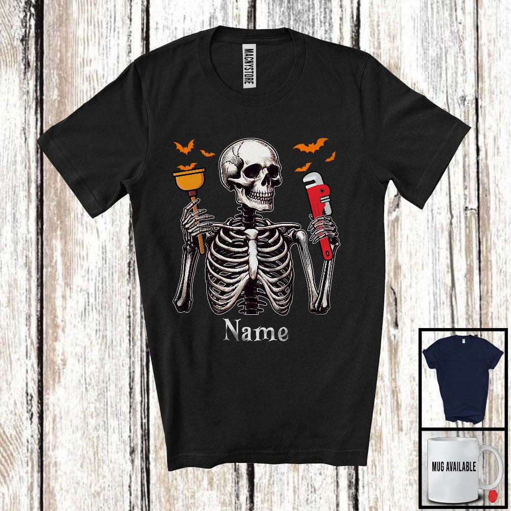 new MacnyStore - Personalized Custom Name Plumber Skeleton, Horror Halloween Costume Proud Careers Group T-Shirt – Macnystore