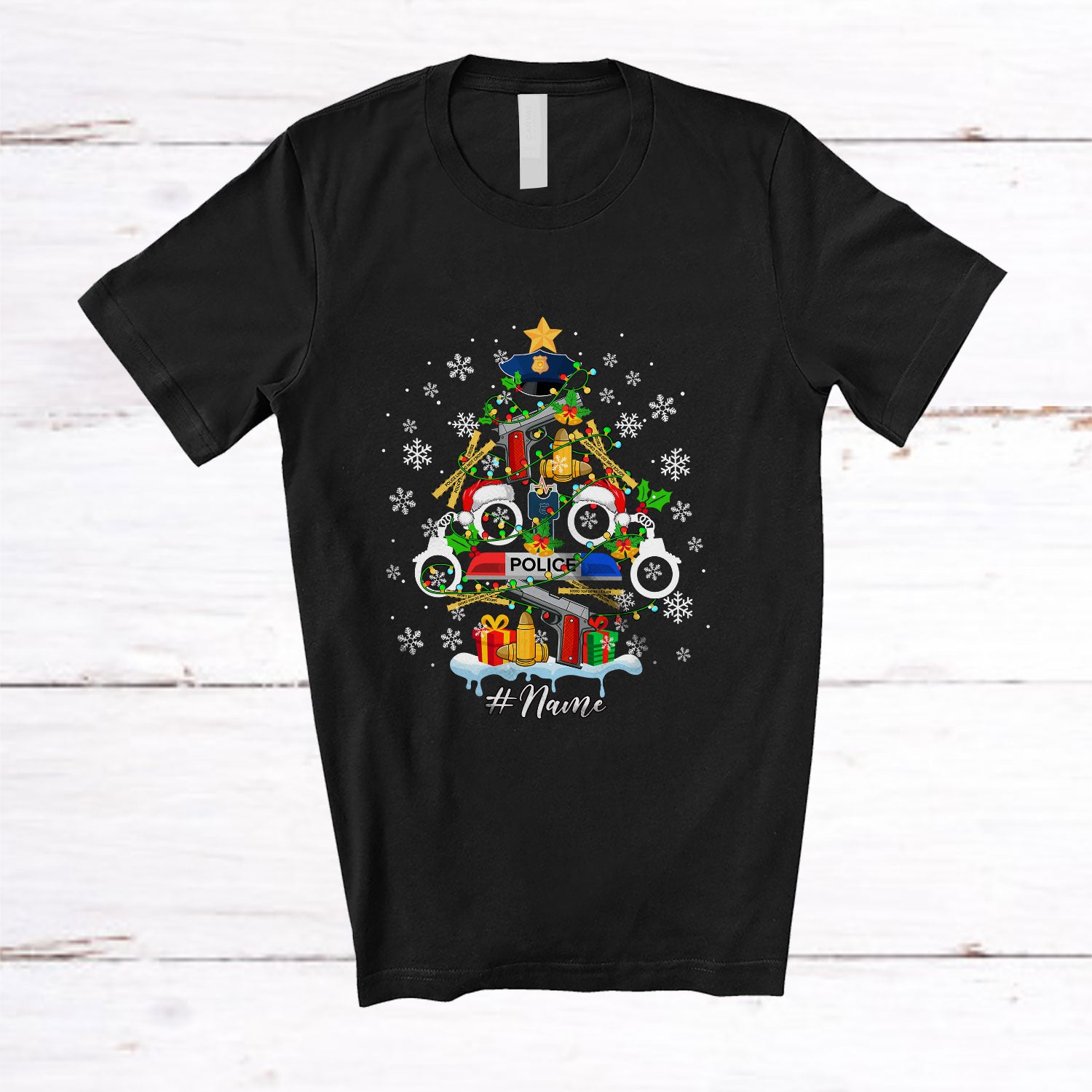 Personalized Custom Name Police Officer Tools Christmas Tree; Amazing X-mas Lights Proud Jobs T-Shirt