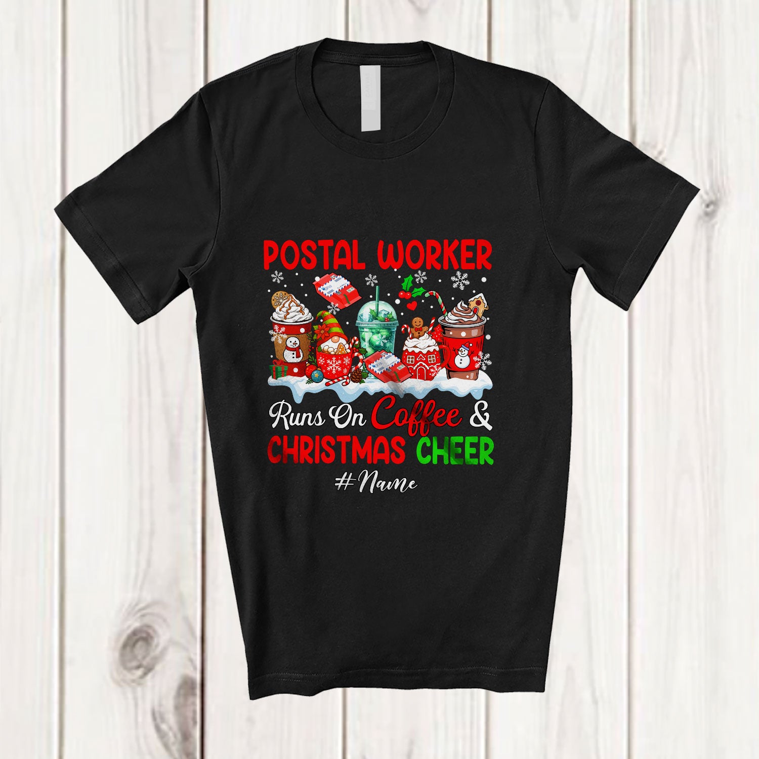 Personalized Custom Name Postal Worker Runs On Coffee Christmas Cheer; Lovely Snow Jobs T-Shirt