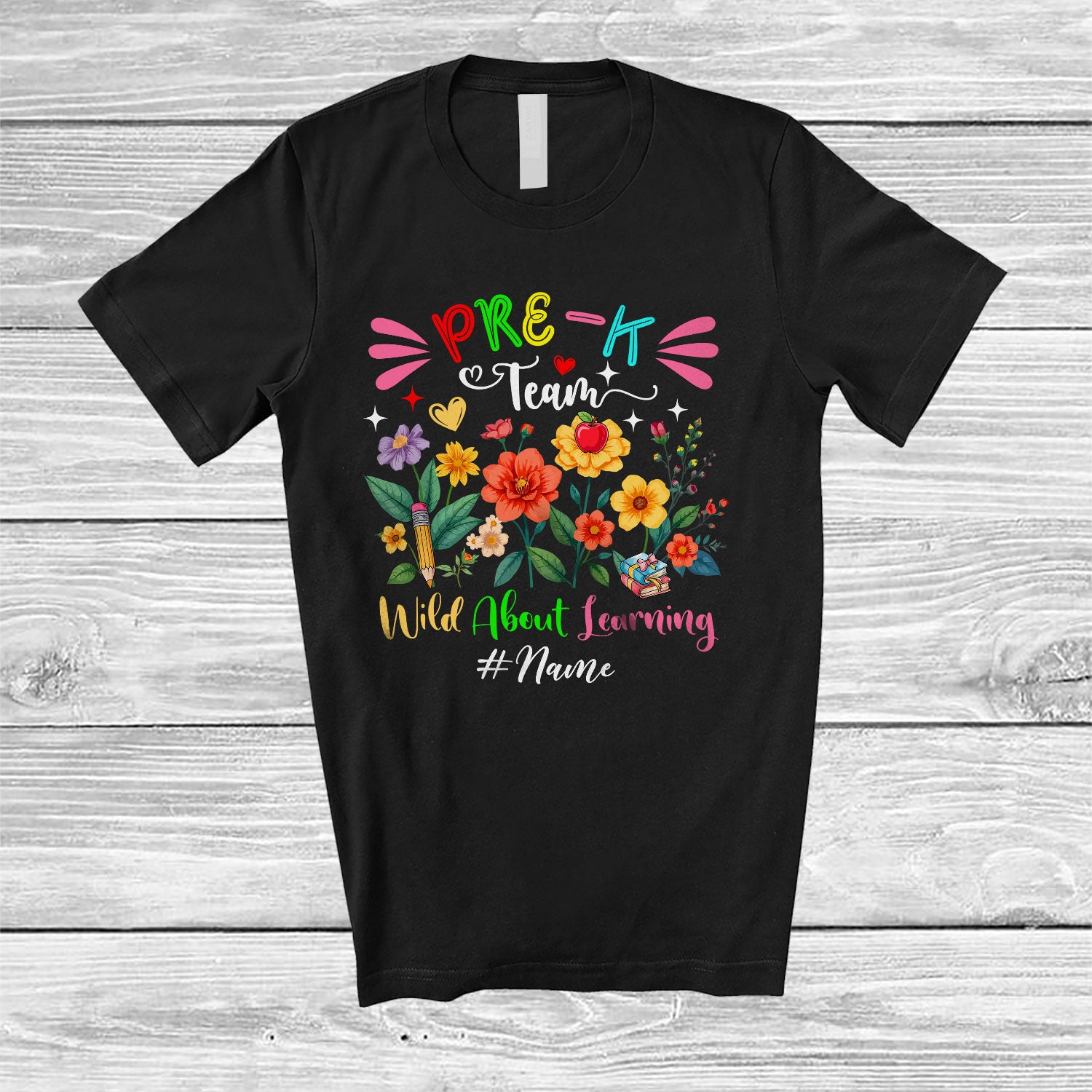 • The Personalized Custom Name Pre-K Team Learning; Lovely First Day Of School Wildflowers Teacher T-Shirt is the yin, to your yang. You've found what you're looking for.