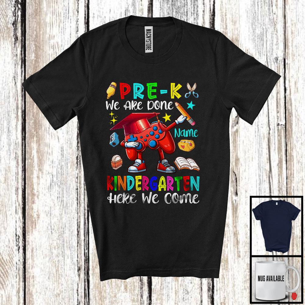 Personalized Custom Name Pre-K We Are Done Kindergarten, Cute Last First Day Of School Gamer T-Shirt