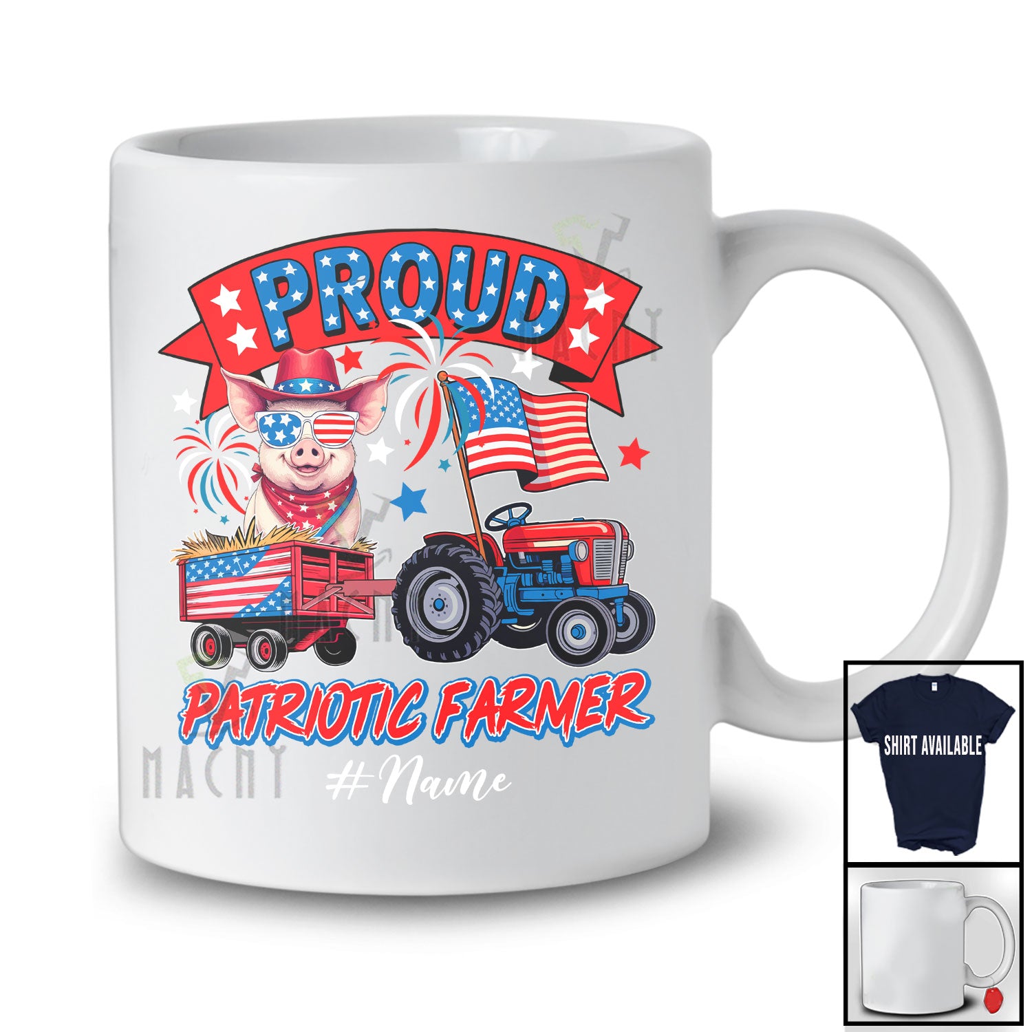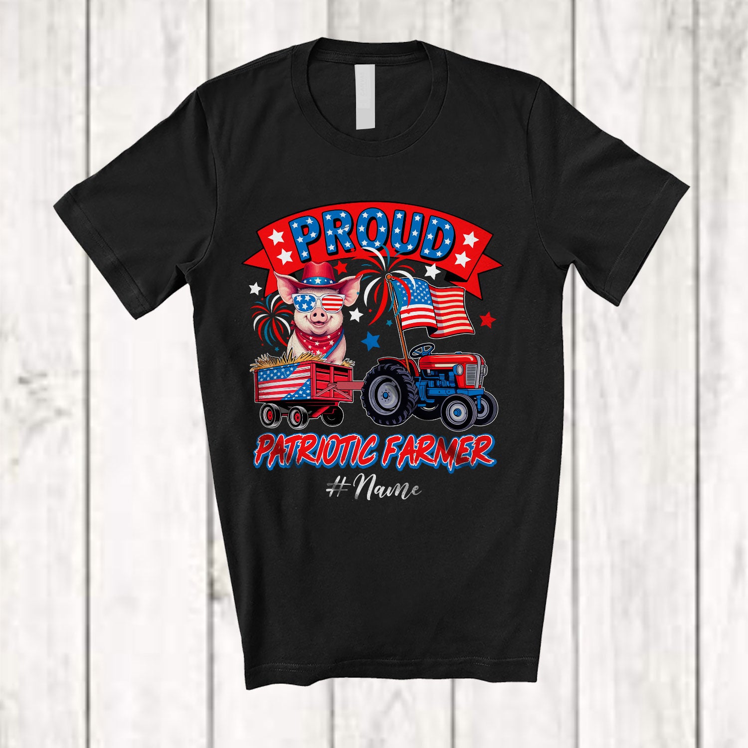 Personalized Custom Name Proud Patriotic; Lovely 4th Of July Pig On Tractor; Farmer Farm T-Shirt