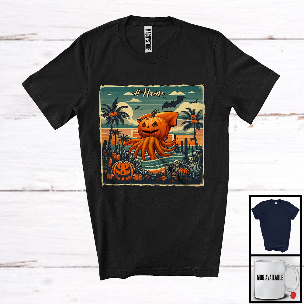 Personalized Custom Name Pumpkin Squid; Scary Halloween Costume Sea Animal Lover T-Shirt