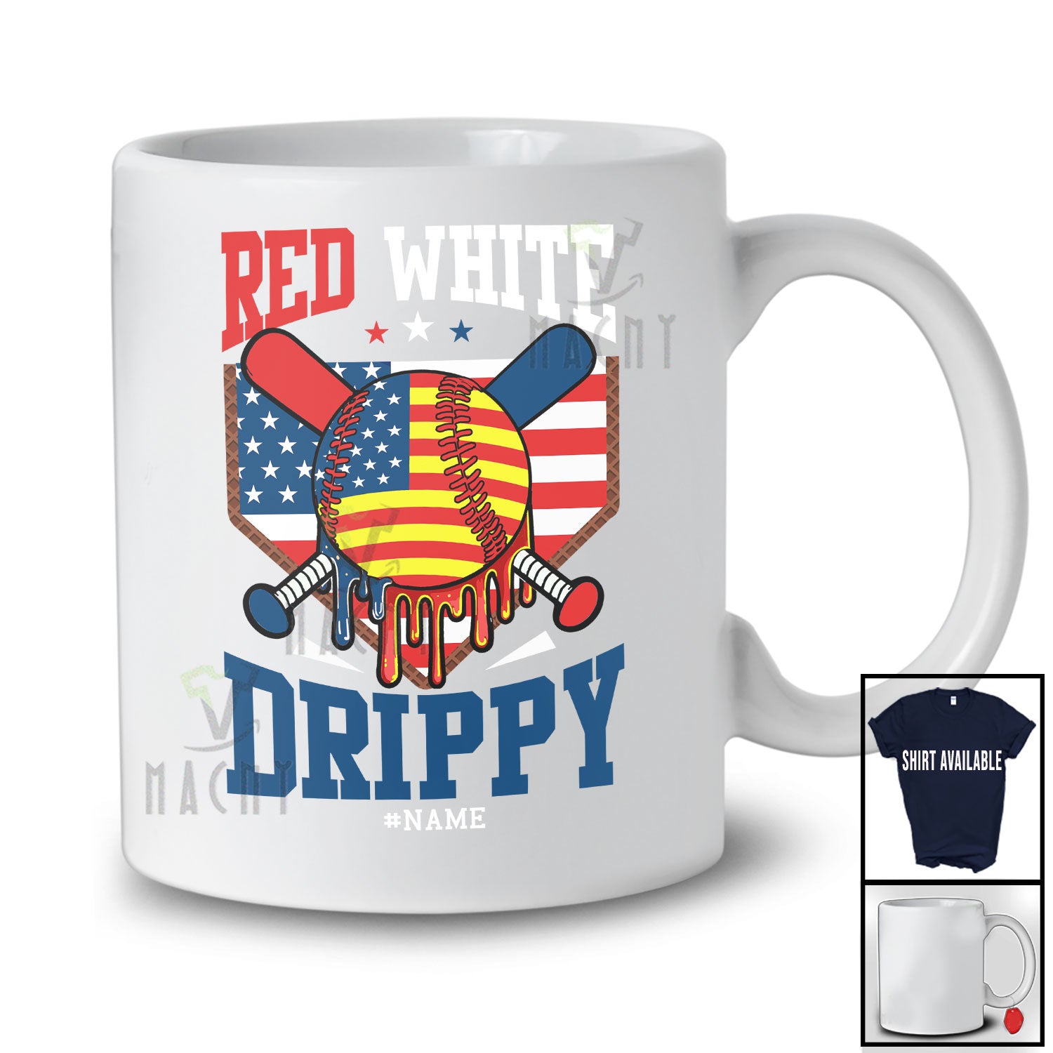 Personalized Custom Name Red White and Drippy; Joyful 4th Of July Softball Ice Cream T-Shirt. This cotton t-shirt is a durable staple product with a classic fit. One of the most popular items, it has a relaxed style made for everyday and casual wear.
