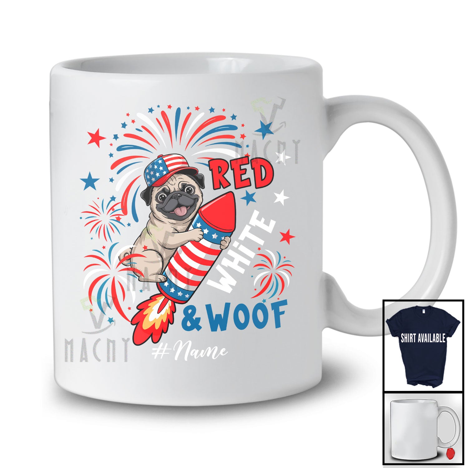 This Personalized Custom Name Red White And Woof; Adorable 4th Of July Pug Firecracker; Patriotic T-Shirt is great idea gift for your family, friends in this birthday, christmas, mother's day, father's day, patrick's day or any holiday.