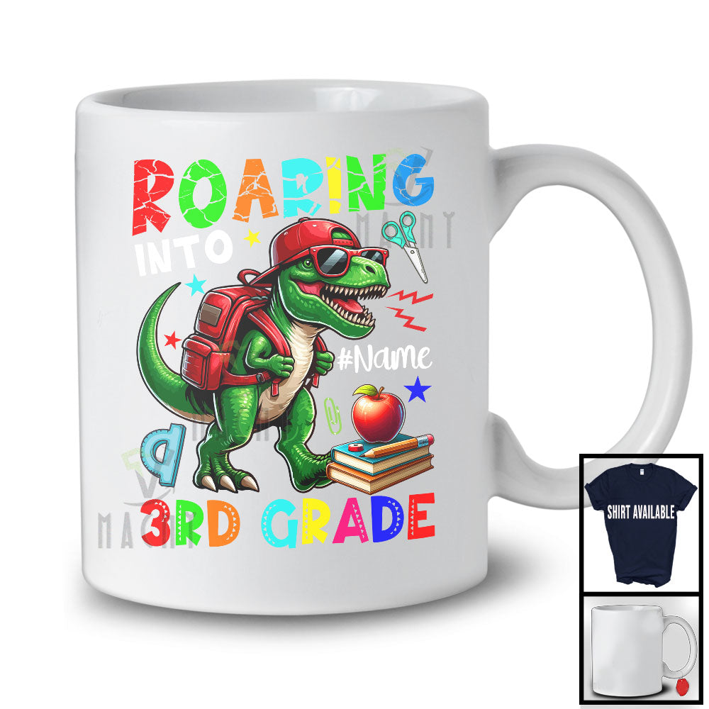 Personalized Custom Name Roaring Into 3rd Grade, Funny First Day Of School T-Rex, Students T-Shirt
