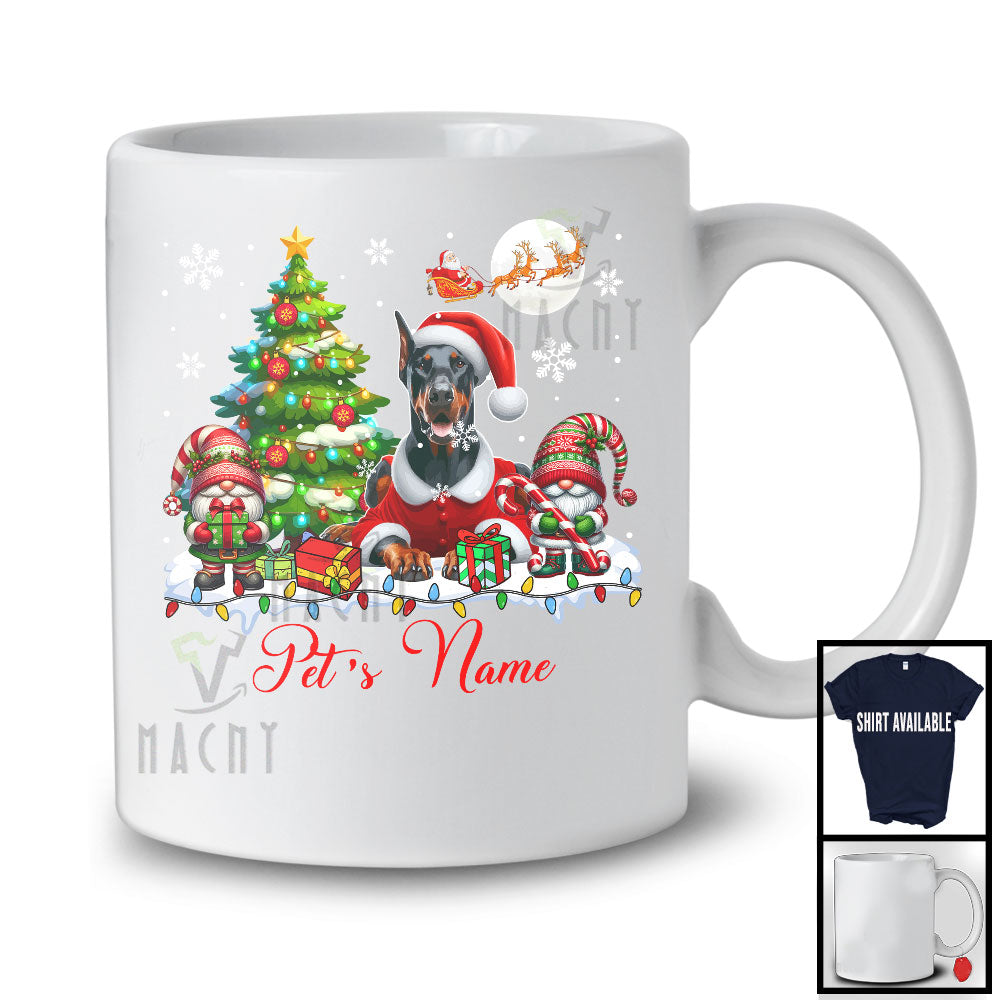 Personalized Custom Name Santa Dobermann With Gnome, Lovely X-mas Tree, Snow Around T-Shirt