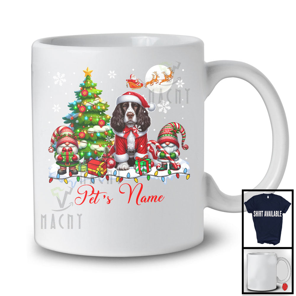 Personalized Custom Name Santa English Springer Spaniel With Gnome, Lovely X-mas Tree, Snow Around T-Shirt