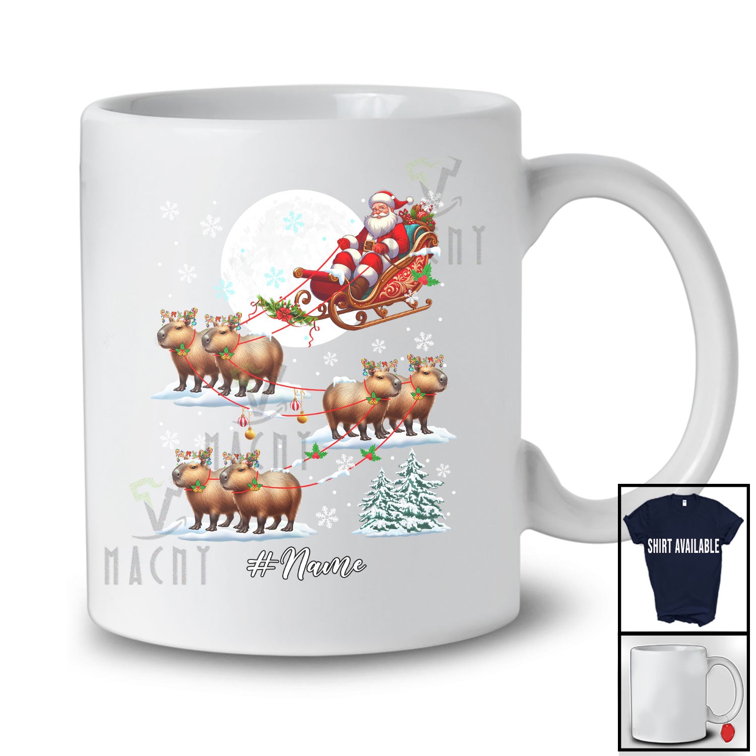 new MacnyStore - Personalized Custom Name Santa Sleigh Capybara Reindeer; Lovely Christmas Moon Animal T-Shirt – Macnystore